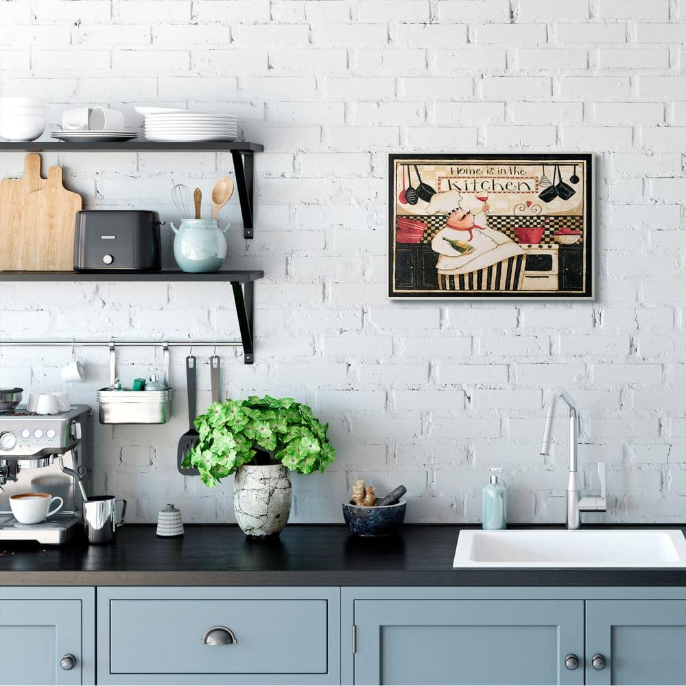 Stupell Industries Home is in the Kitchen with Happy Chef Illustration Wood Wall Plaque