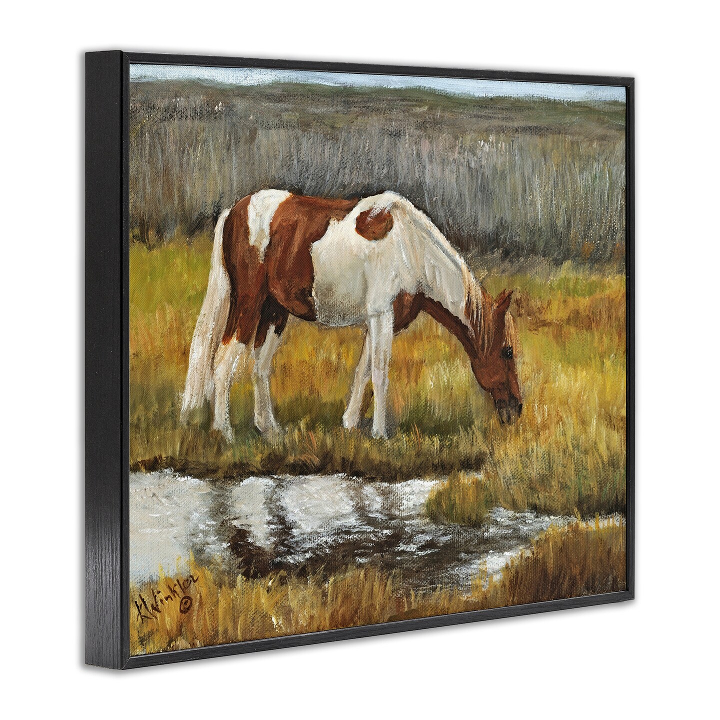 Stupell Industries Horse Drinking Water by Stream Framed Giclee By Kathy Winkler