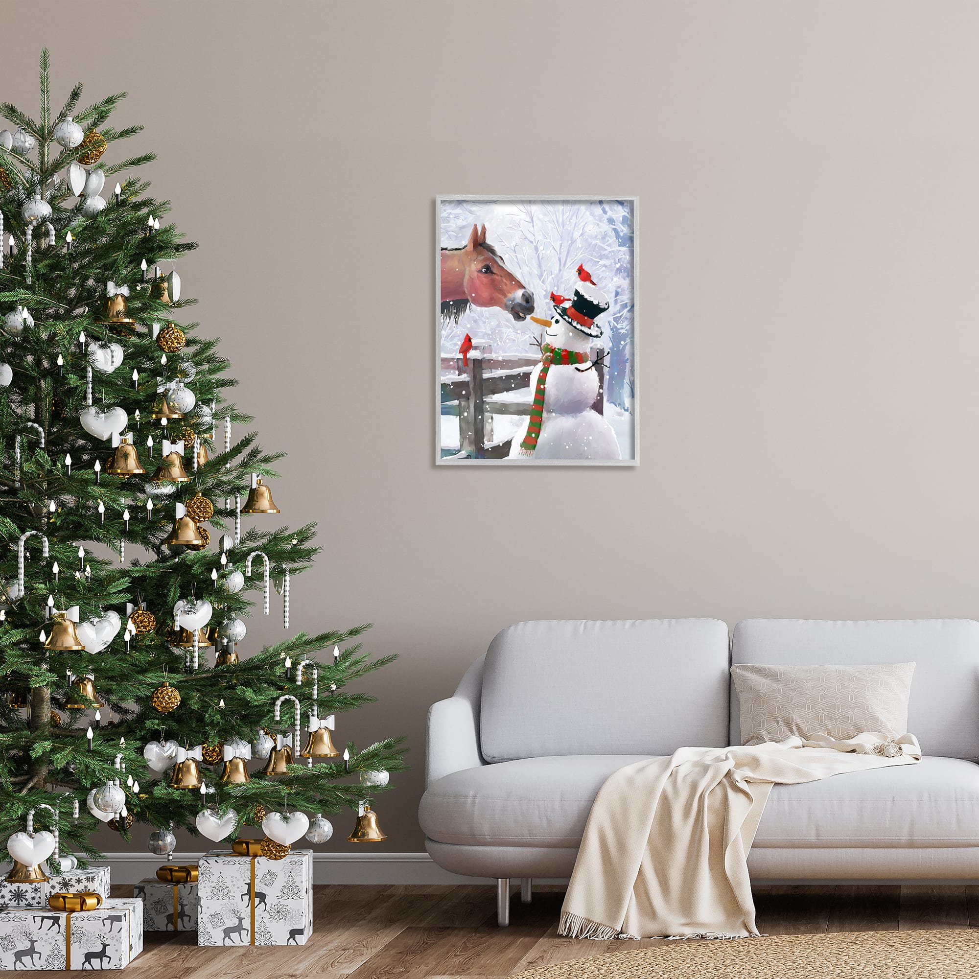 Stupell Industries Horse Eating Snowman Carrot Scene Framed Giclee Art