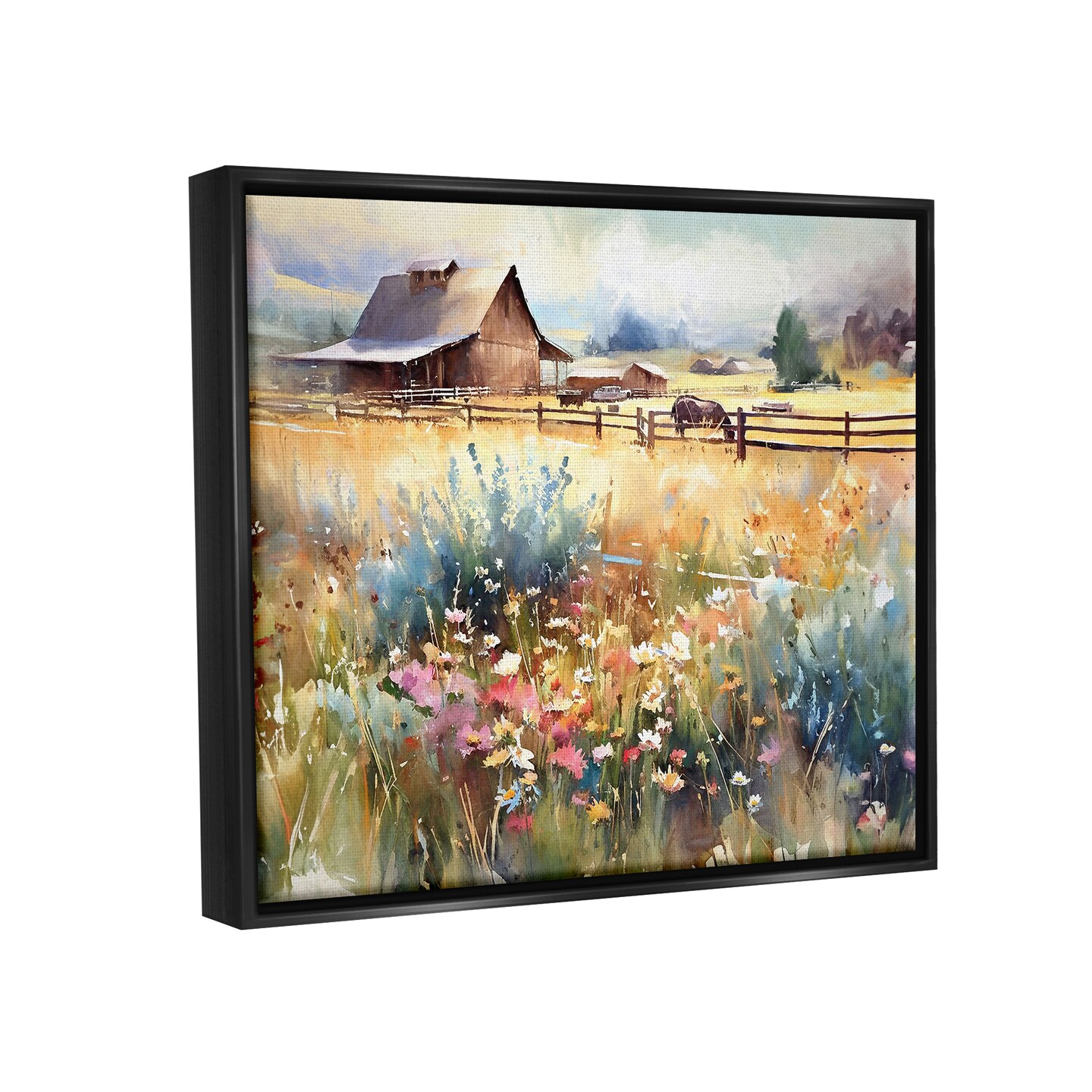 Stupell Industries Horse in Farmhouse Meadow Black Framed Floater Canvas Wall Art