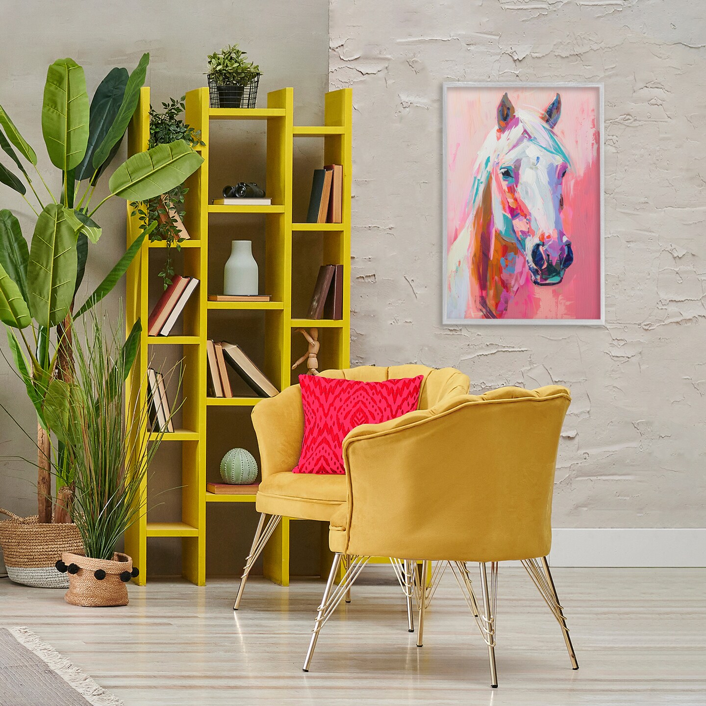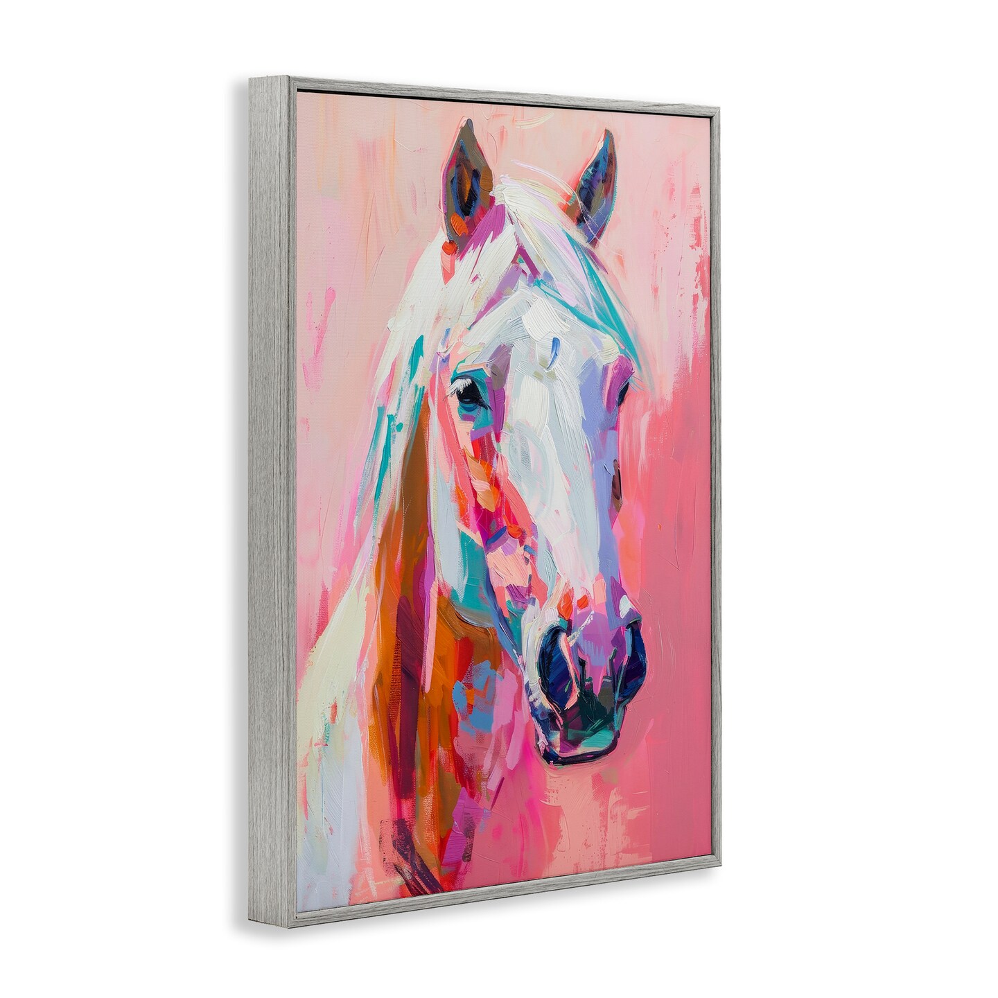 Stupell Industries Horse Visage on Pink Framed Giclee Wall Art Design by Petal Prints Design