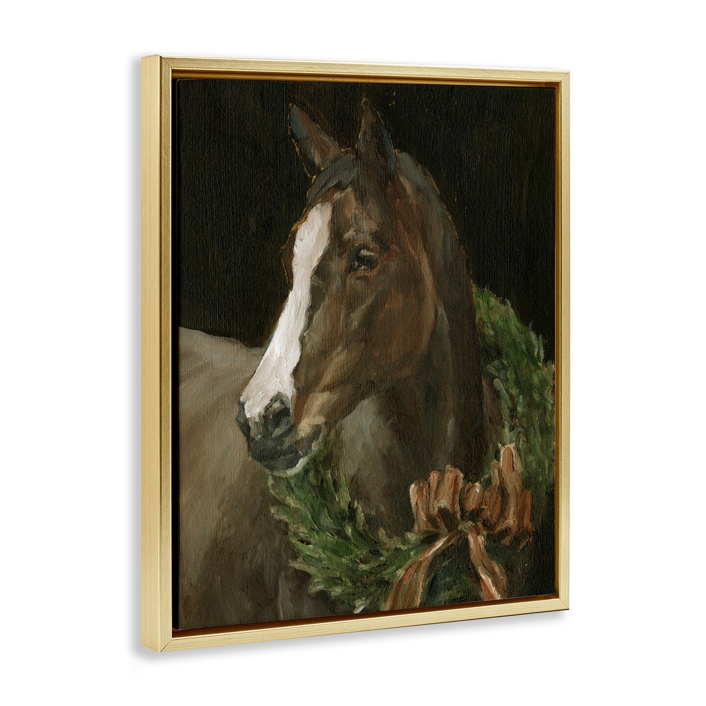 Stupell Industries Horse with Festive Wreath Floating Frame By Ethan Harper