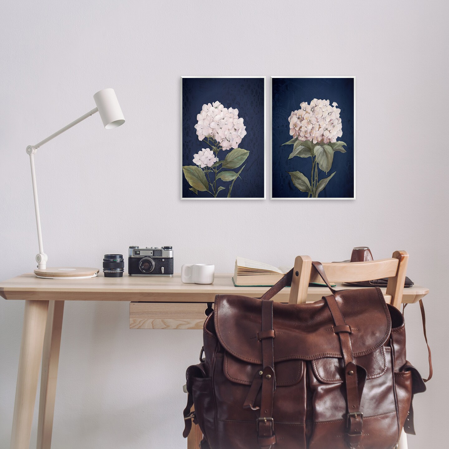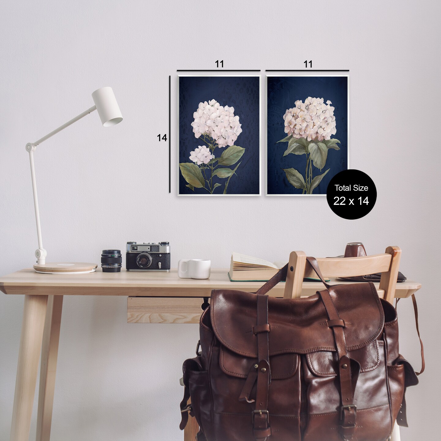 Stupell Industries Hydrangea Flower on Blue 2 pc Wall Plaque Art Set Design by Patricia Pinto