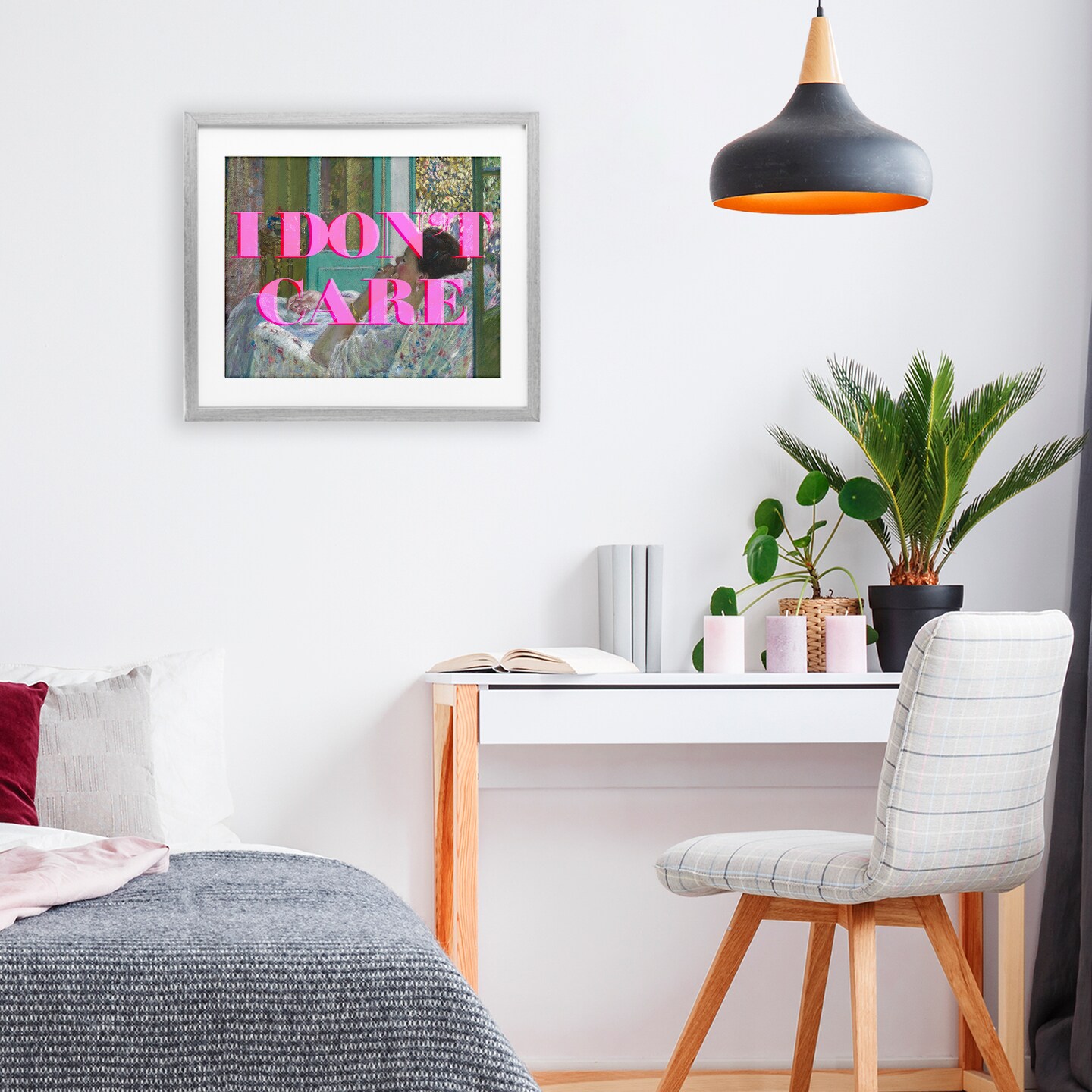 Stupell Industries I Don't Care over Classic Painting Framed Print Under Glass, design by Lil' Rue