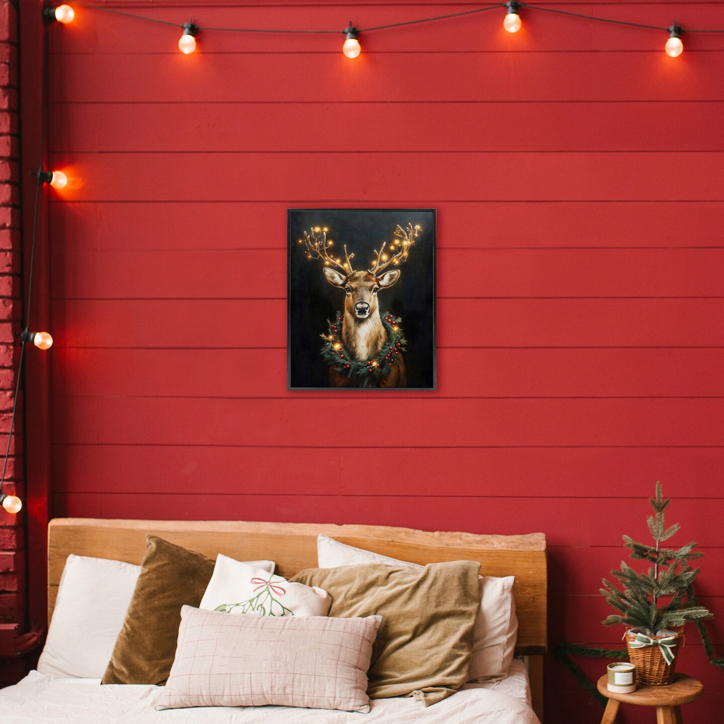 Stupell Industries Illuminated Deer & Wreath Framed Giclee, design by Arlington Prints