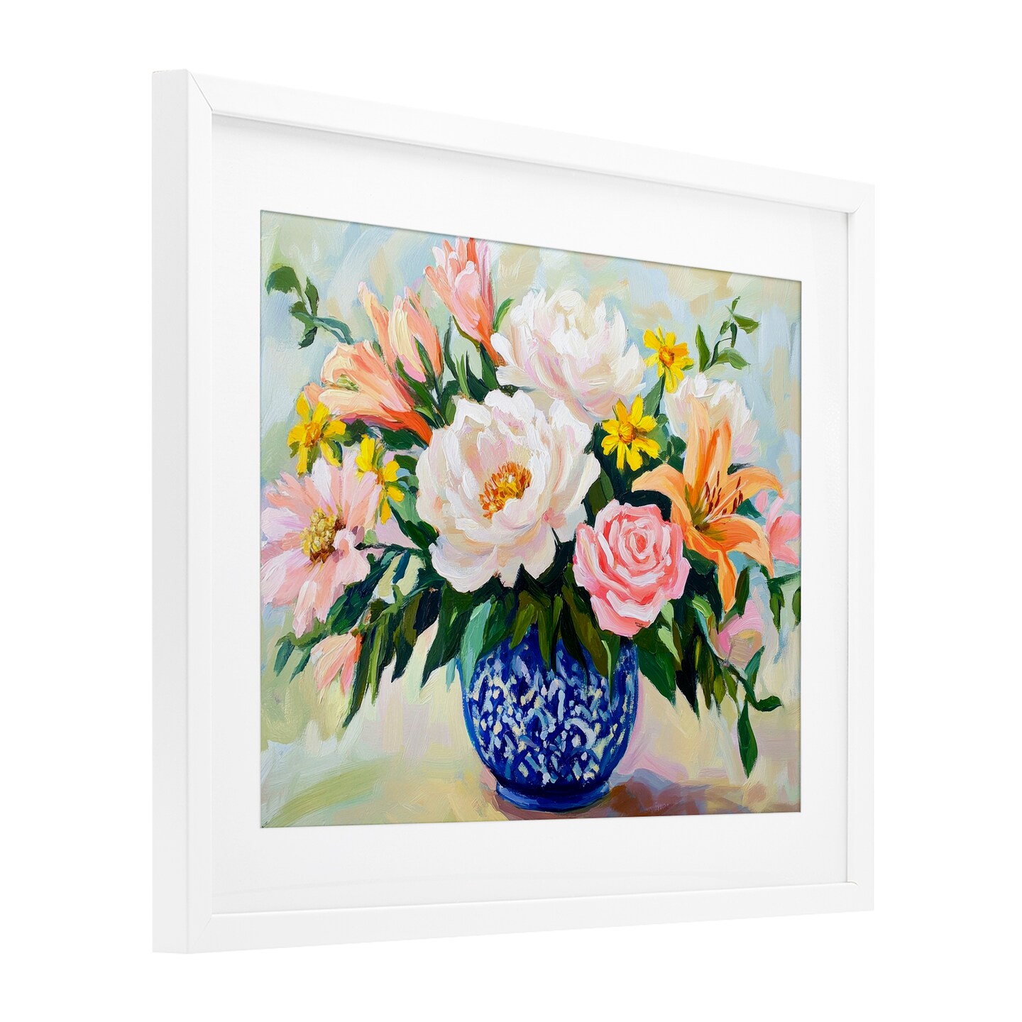 Stupell Industries Indigo Chinoiserie with Assorted Flowers Framed Print Under Glass, design by Petal Prints Design