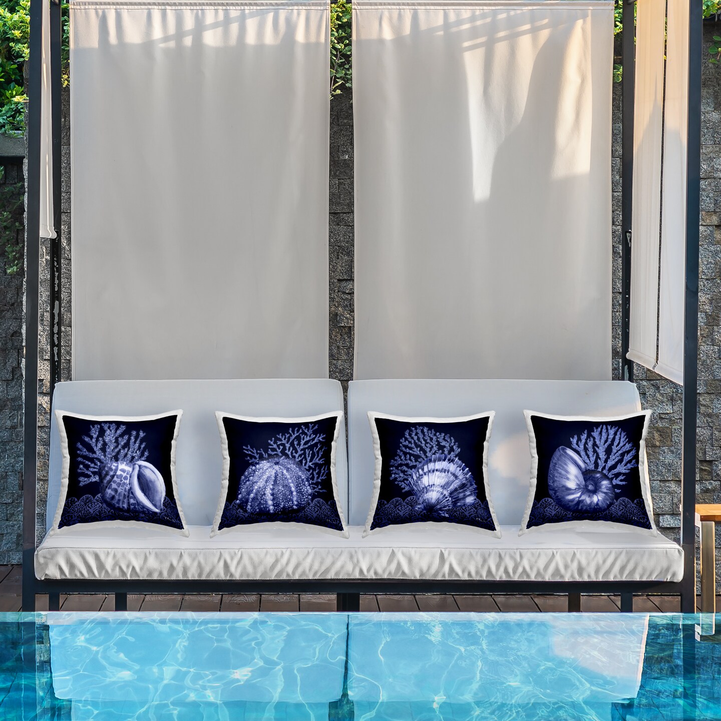 Stupell Industries Indigo Nautical Seashells 4pc Outdoor Printed Throw Pillow Set Design by Paul Brent, 18 x 7 x 18