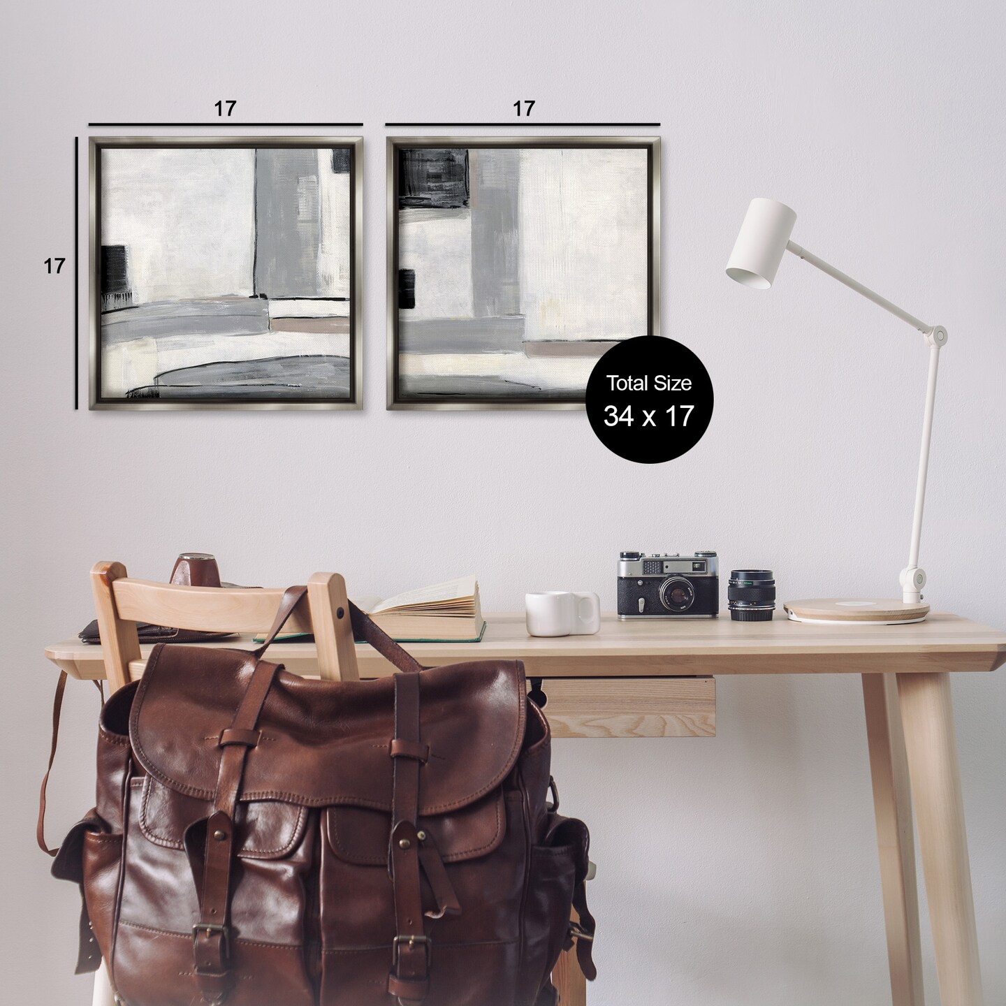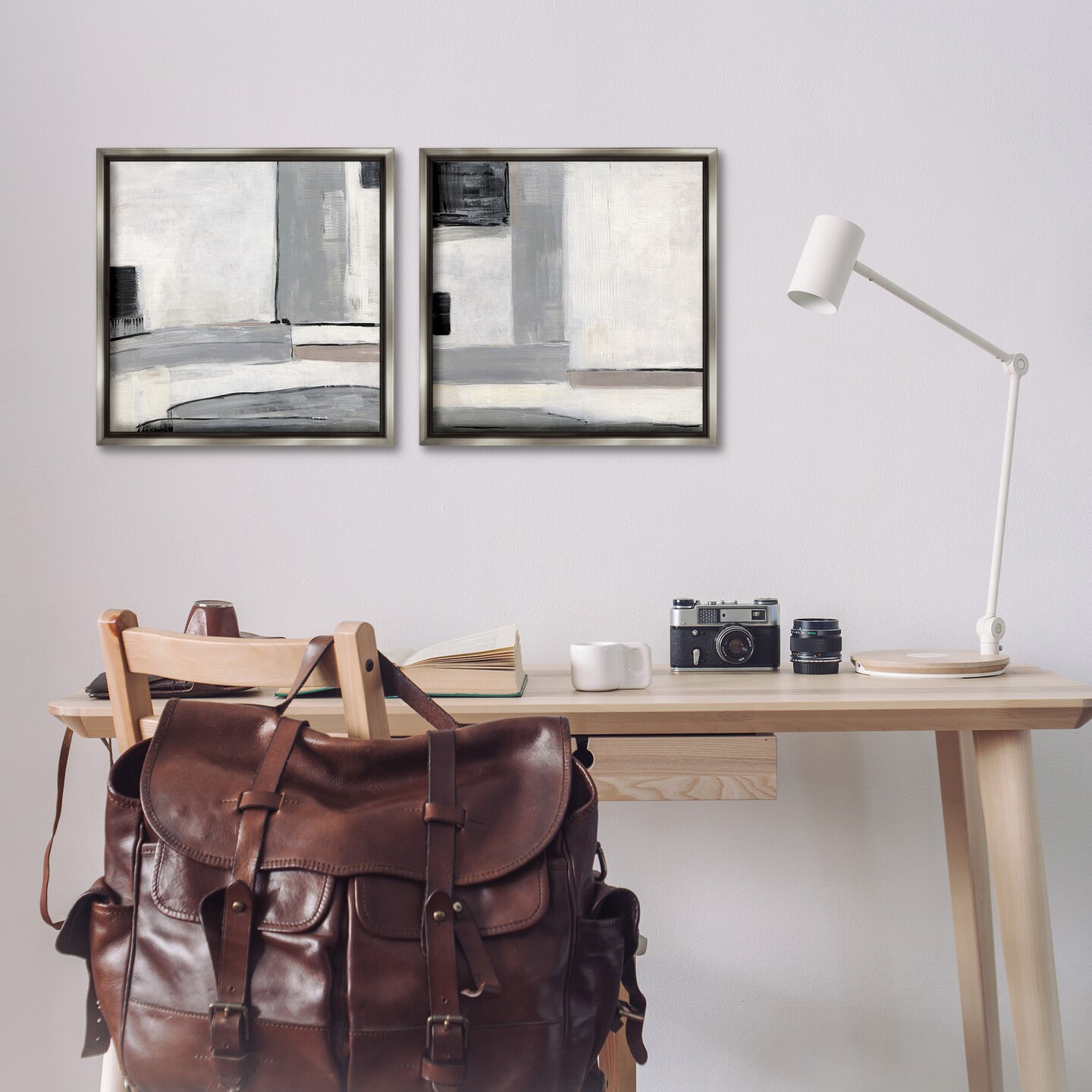 Stupell Industries Industrial Abstract Grey Geometric Framed Floater Canvas Wall Art