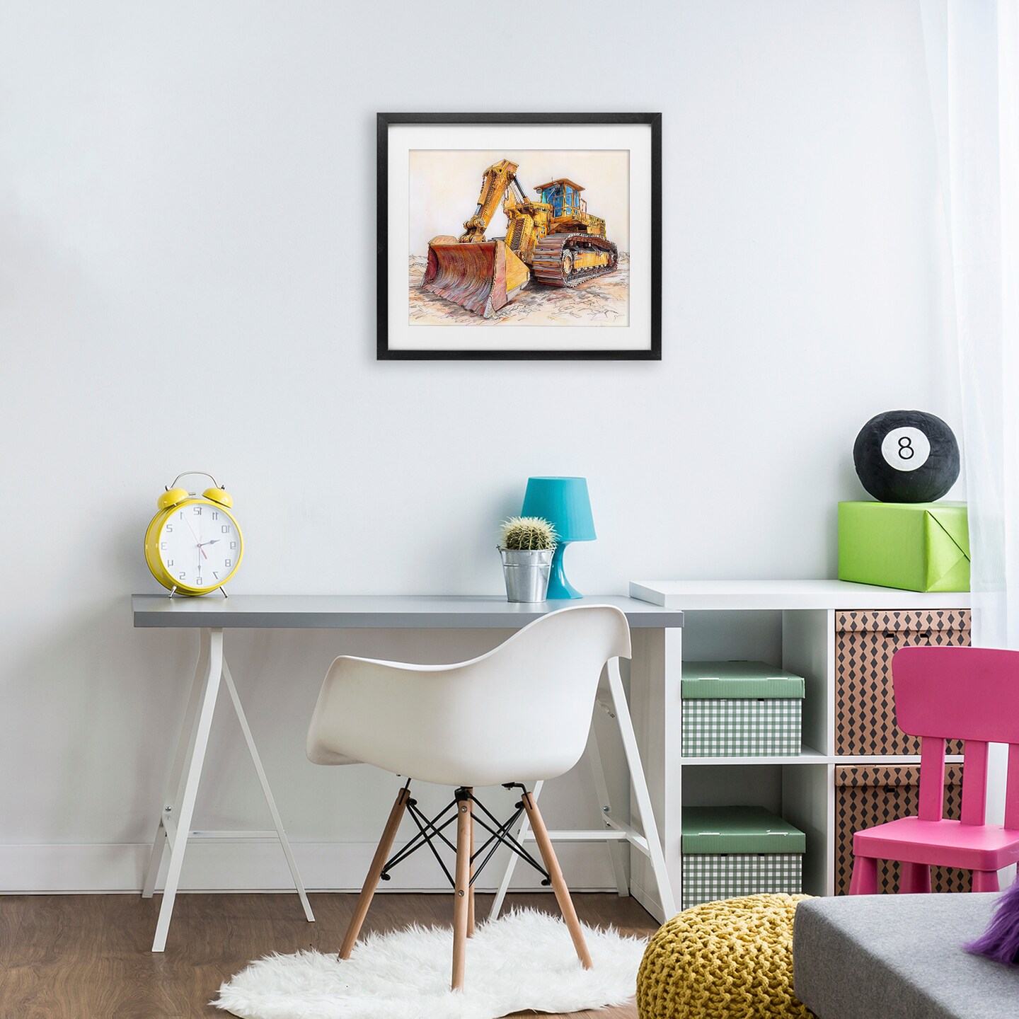 Stupell Industries Industrial Bulldozer Drawing Framed Print Under Glass, design by Steve Hunziker