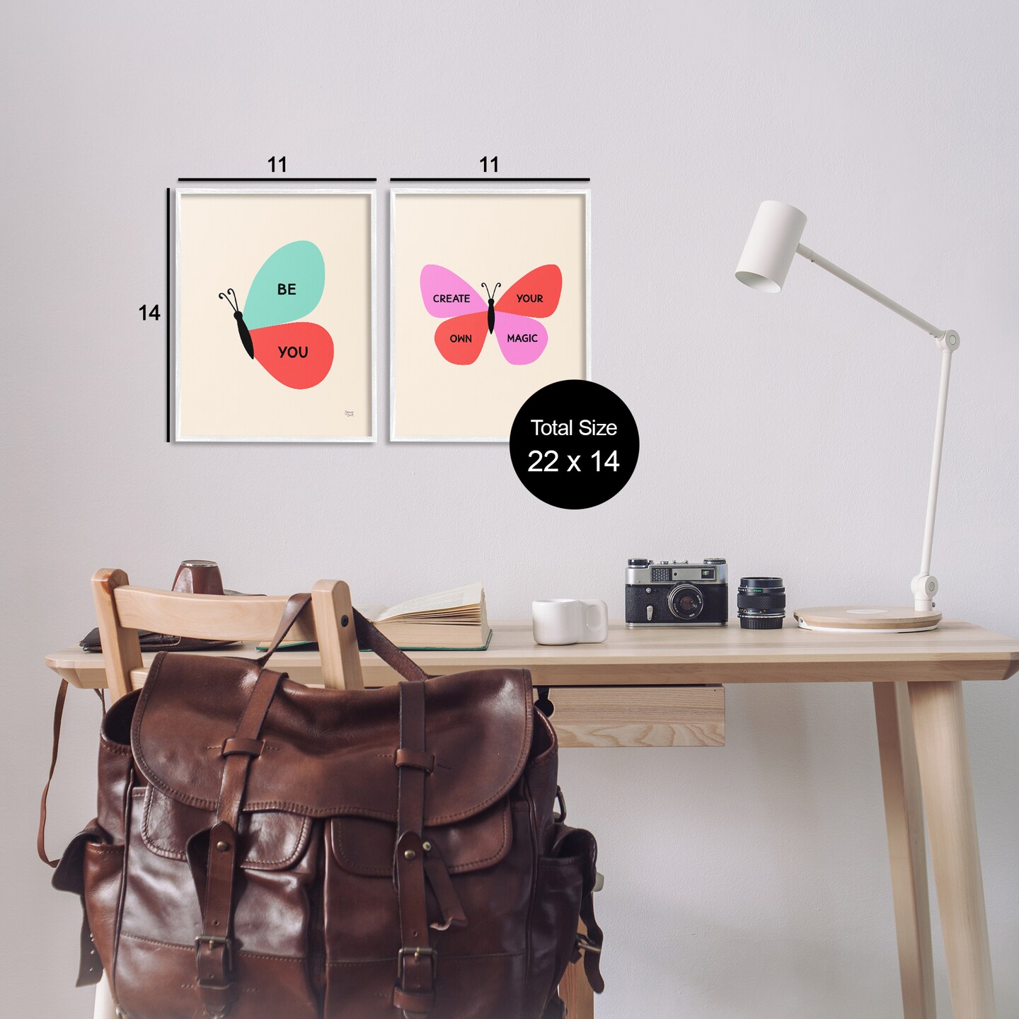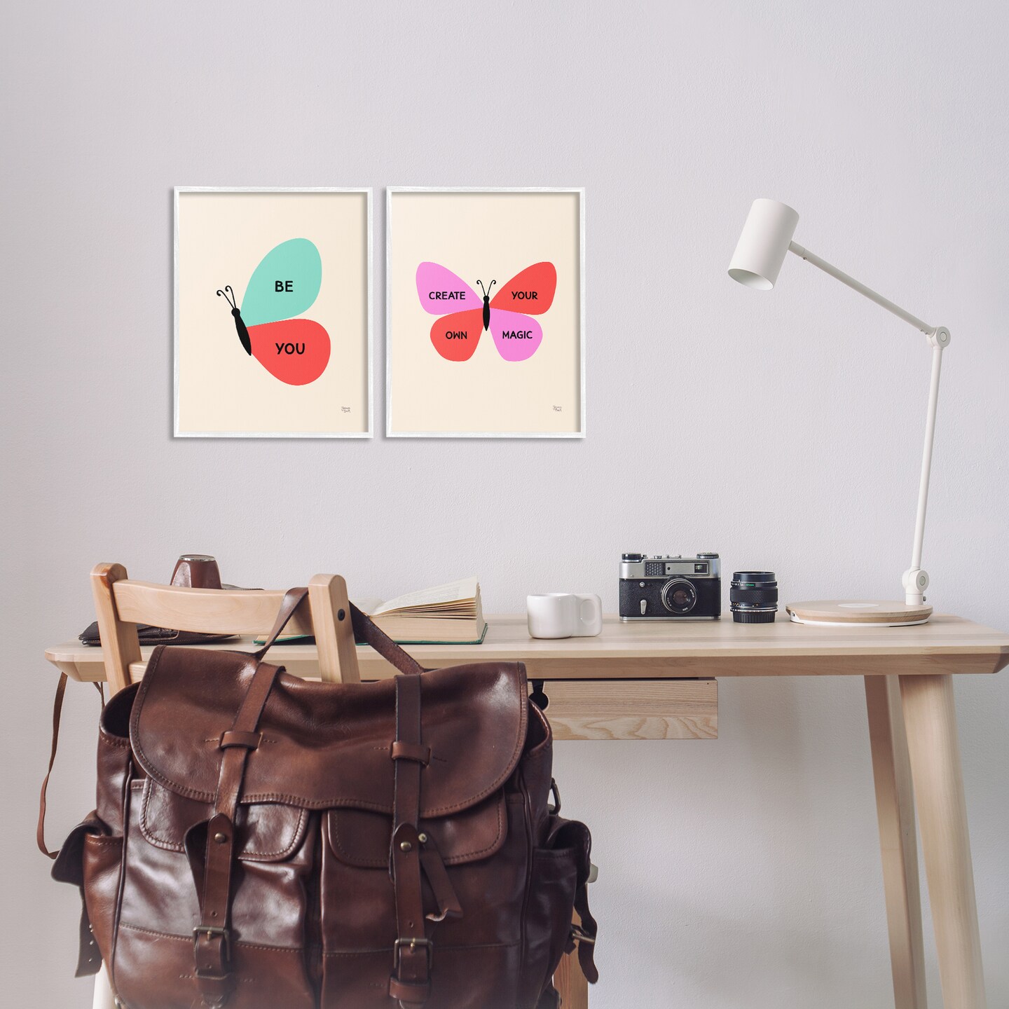Stupell Industries Inspiring Butterfly Sentiments 2 pc Framed Giclee Wall Art Set Design by Jessica Beck