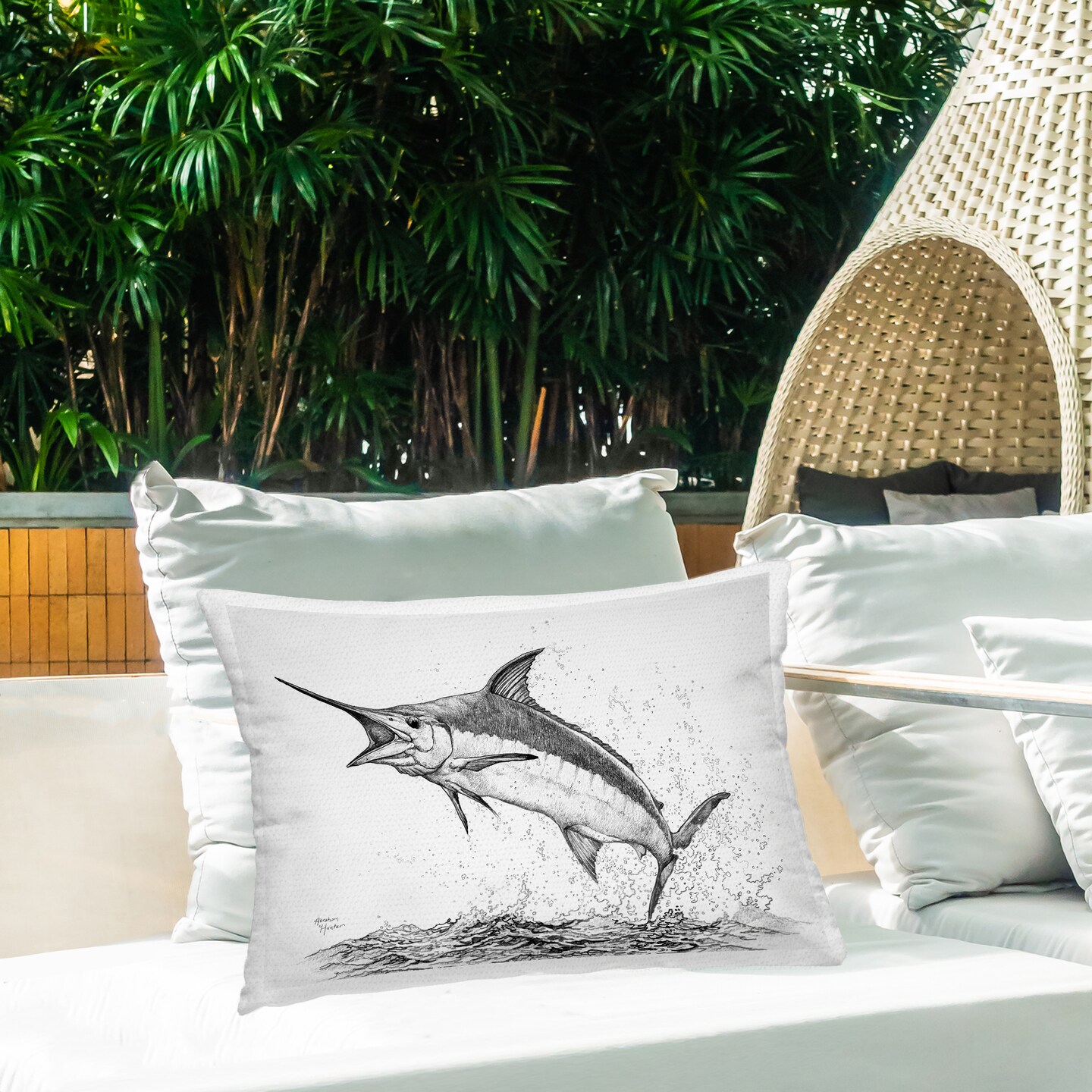 Stupell Industries Jumping Blue Marlin Sketch Outdoor Printed Pillow design by Abraham Hunter, 14 x 7 x 20