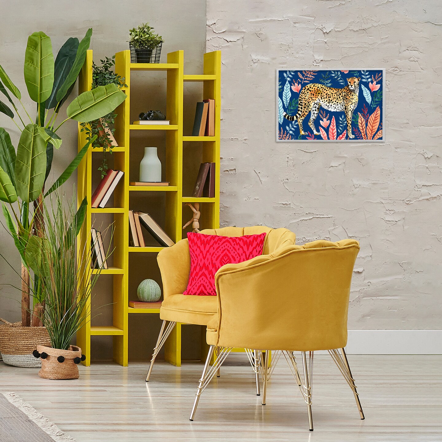 Stupell Industries Jungle Plants & Cheetah Framed Giclee Wall Art Design by Elena Vladykina