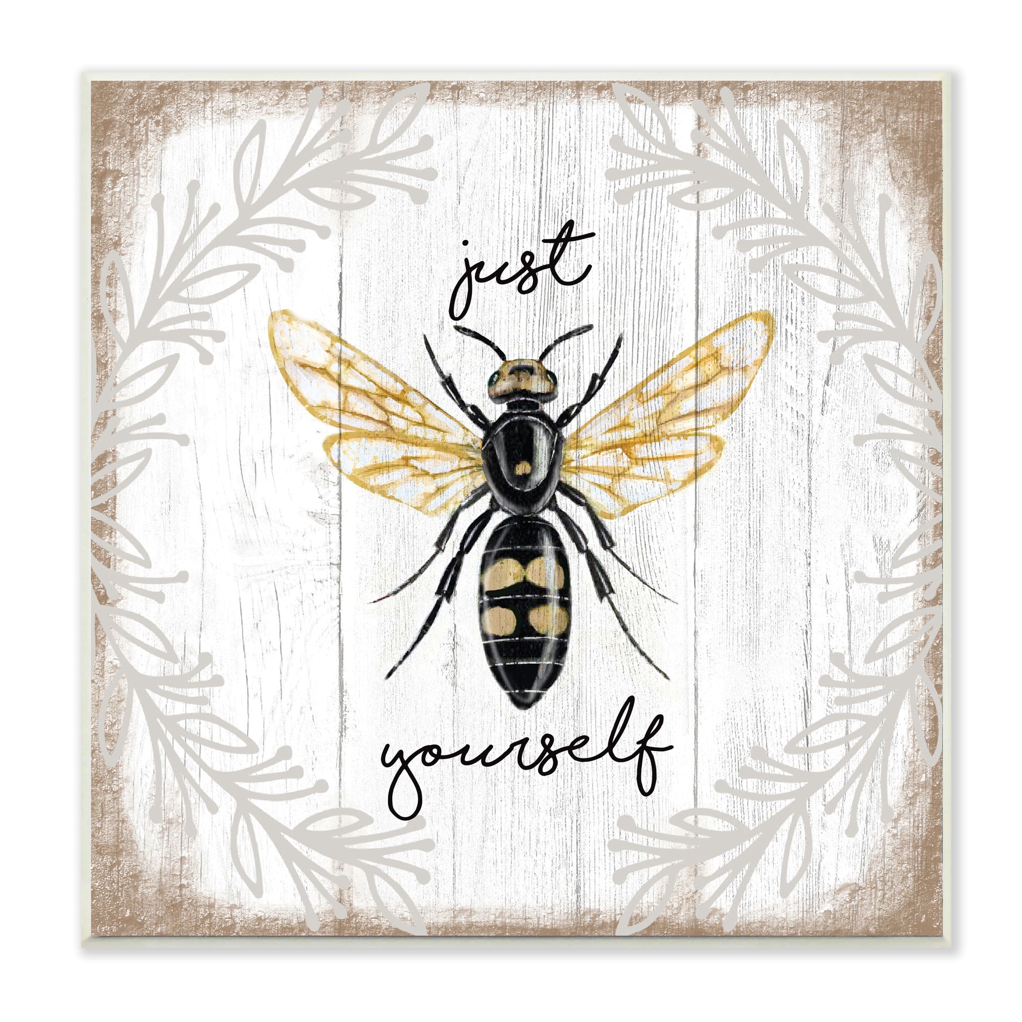 Stupell Industries Just Be Yourself Sentiment Country Charm Bee Wood Wall Plaque