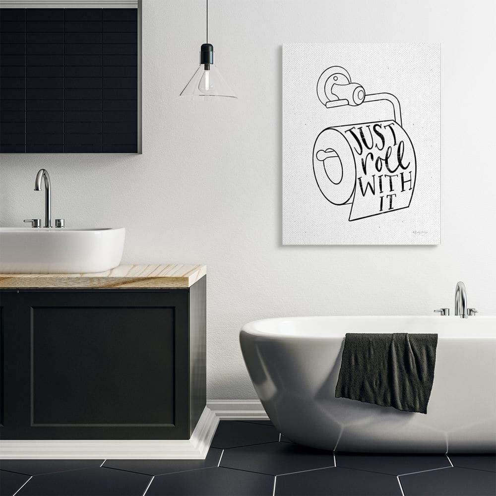 Stupell Industries Just Roll With It Toilet Bathroom Humor Word Pun Canvas Wall Art