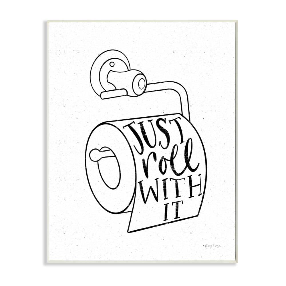 Stupell Industries Just Roll With It Toilet Bathroom Humor Word Pun Wood Wall Plaque
