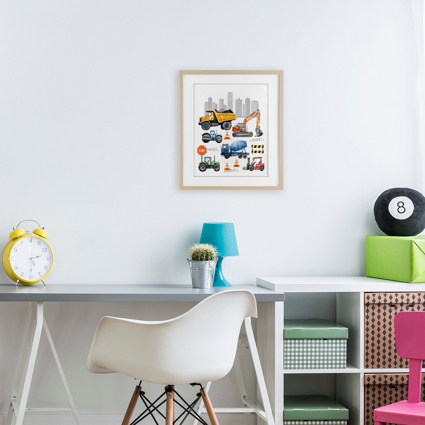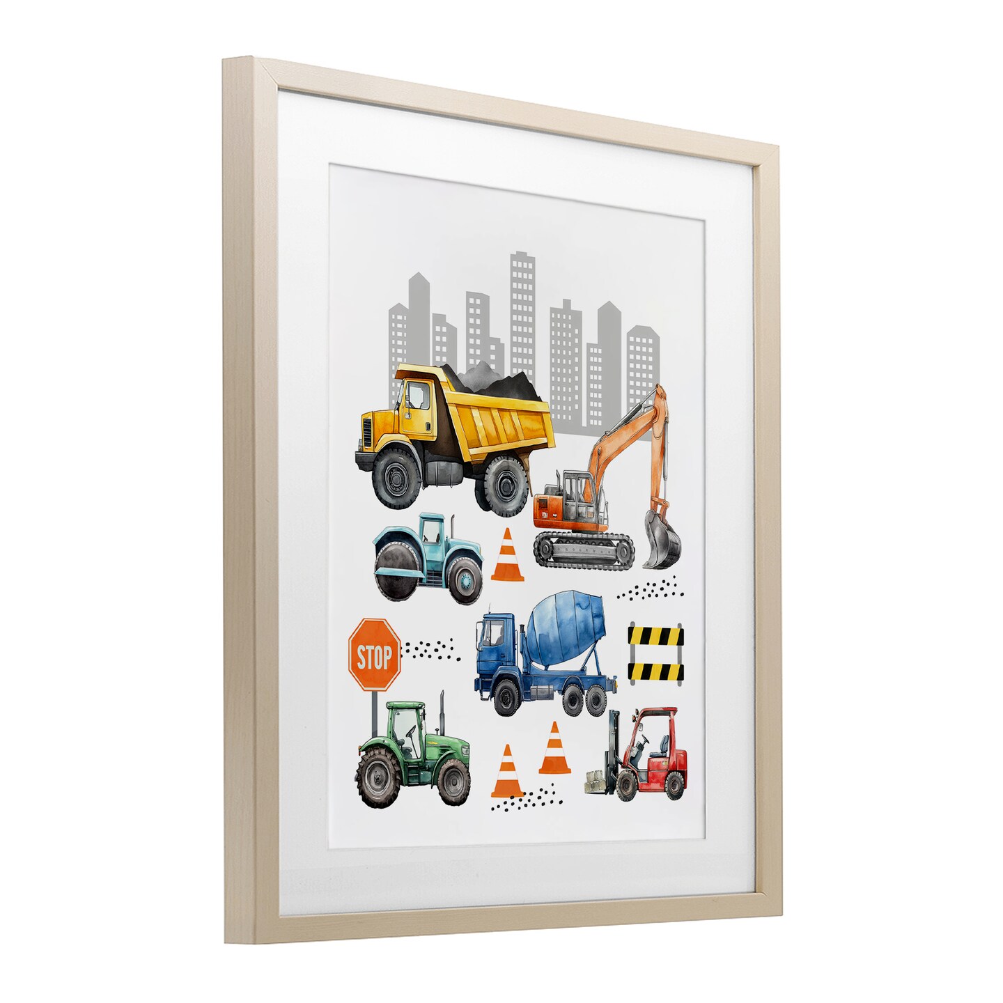 Stupell Industries Keep Moving Construction Vehicles Framed Print Under Glass, design by Christine Simpson Art