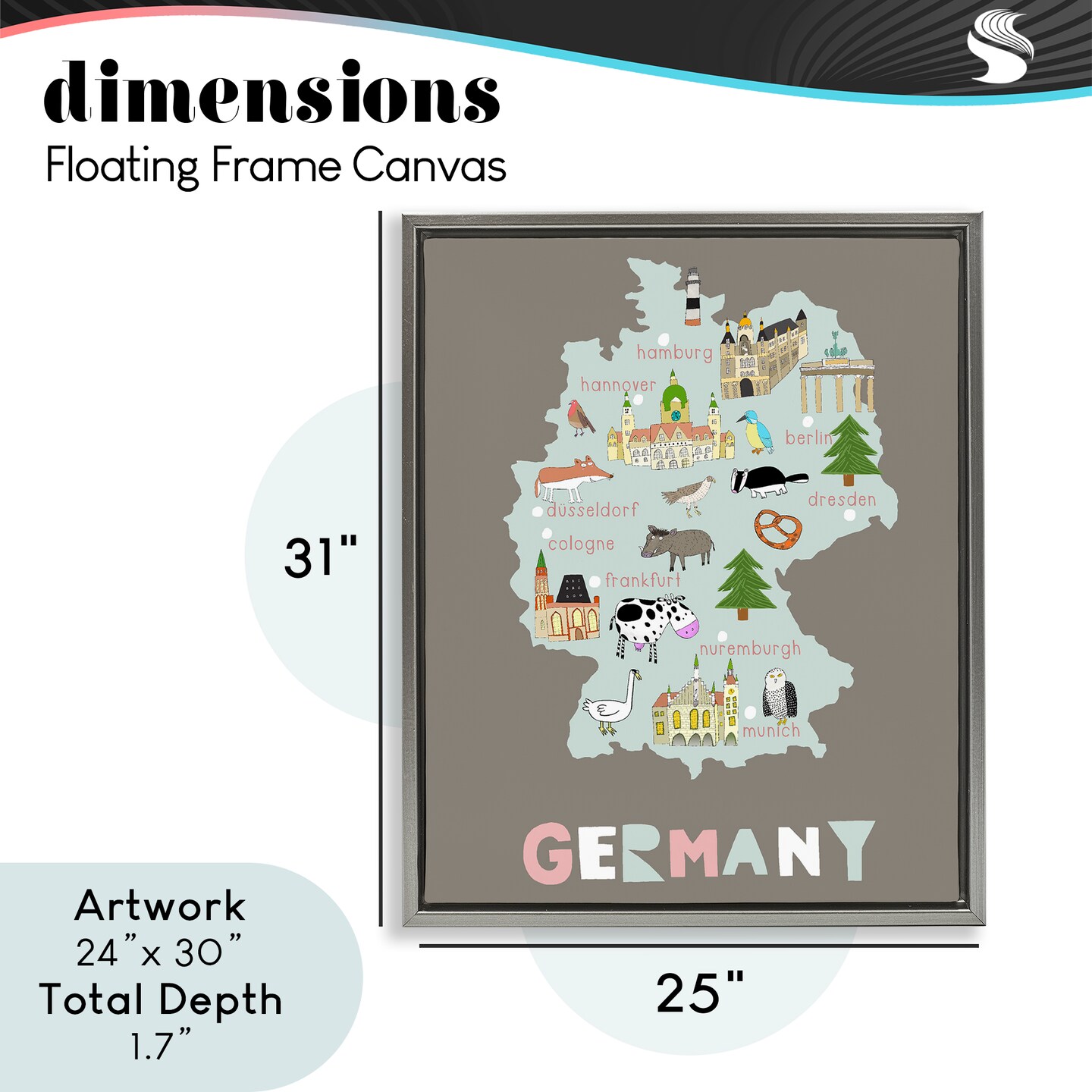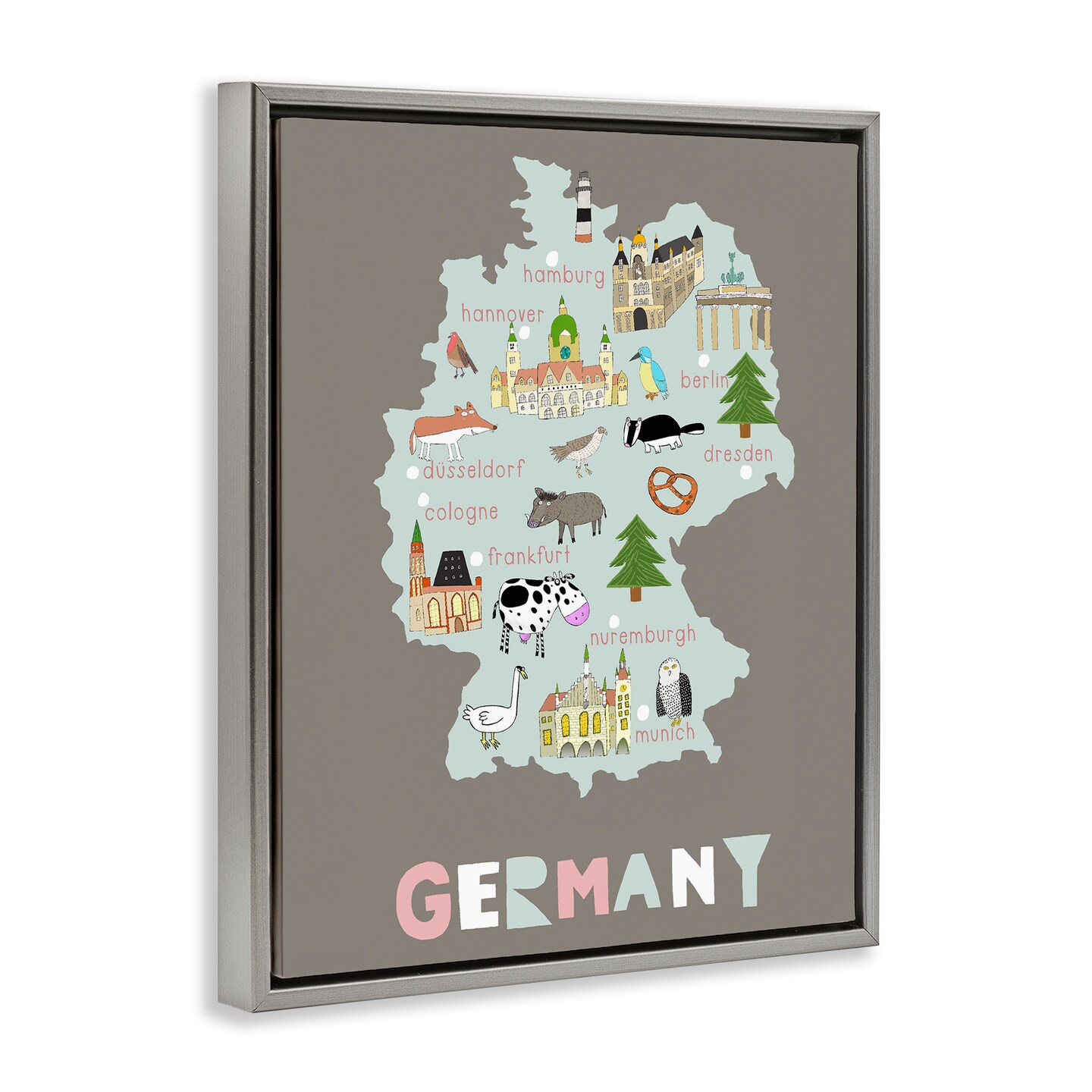 Stupell Industries Kid's Map of Germany Floating Frame, design by Carla Daly