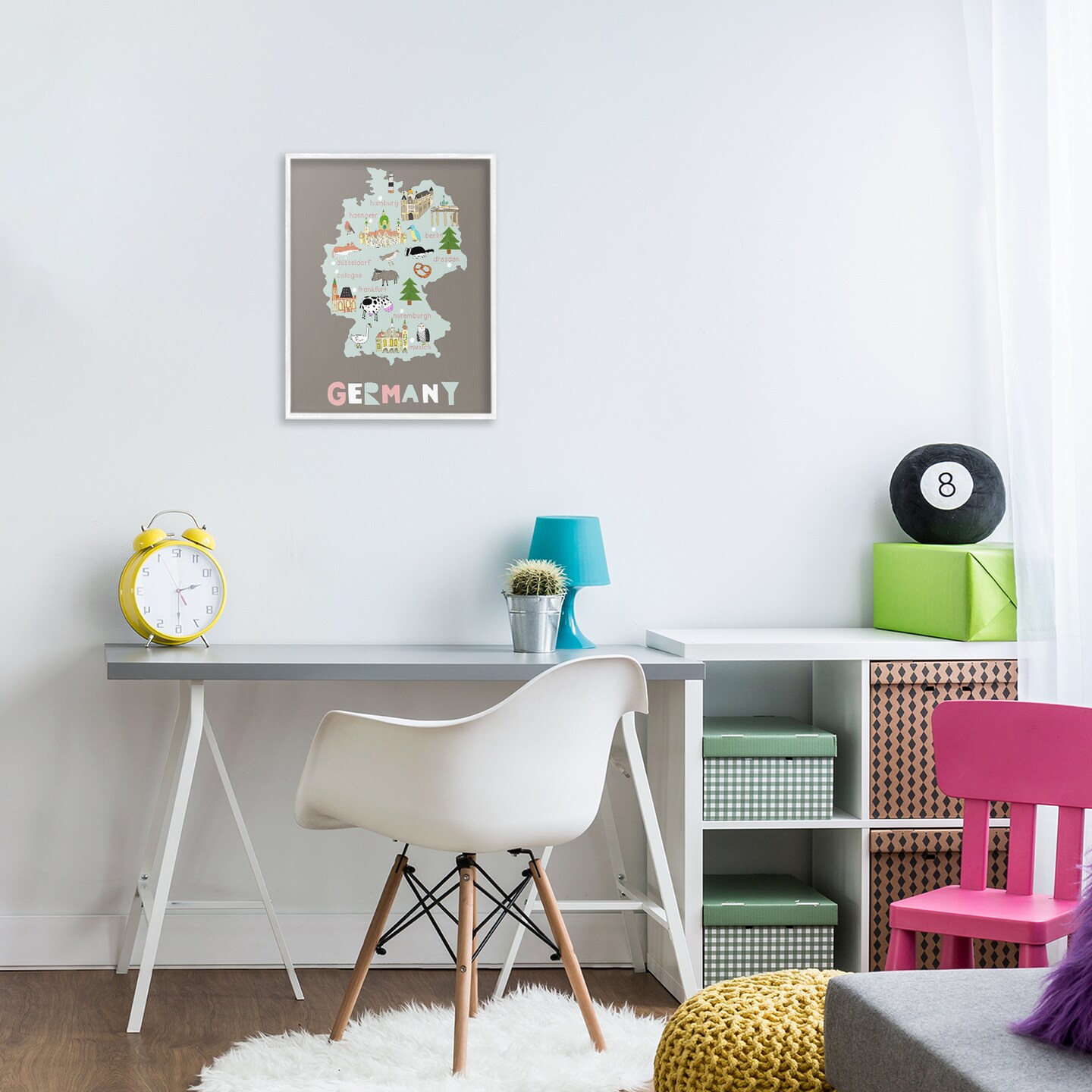Stupell Industries Kid's Map of Germany Framed Giclee, design by Carla Daly