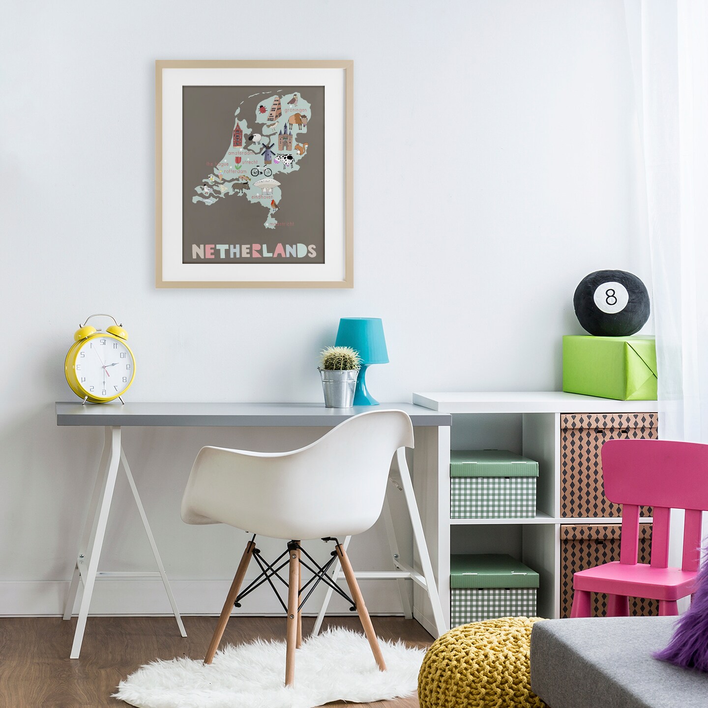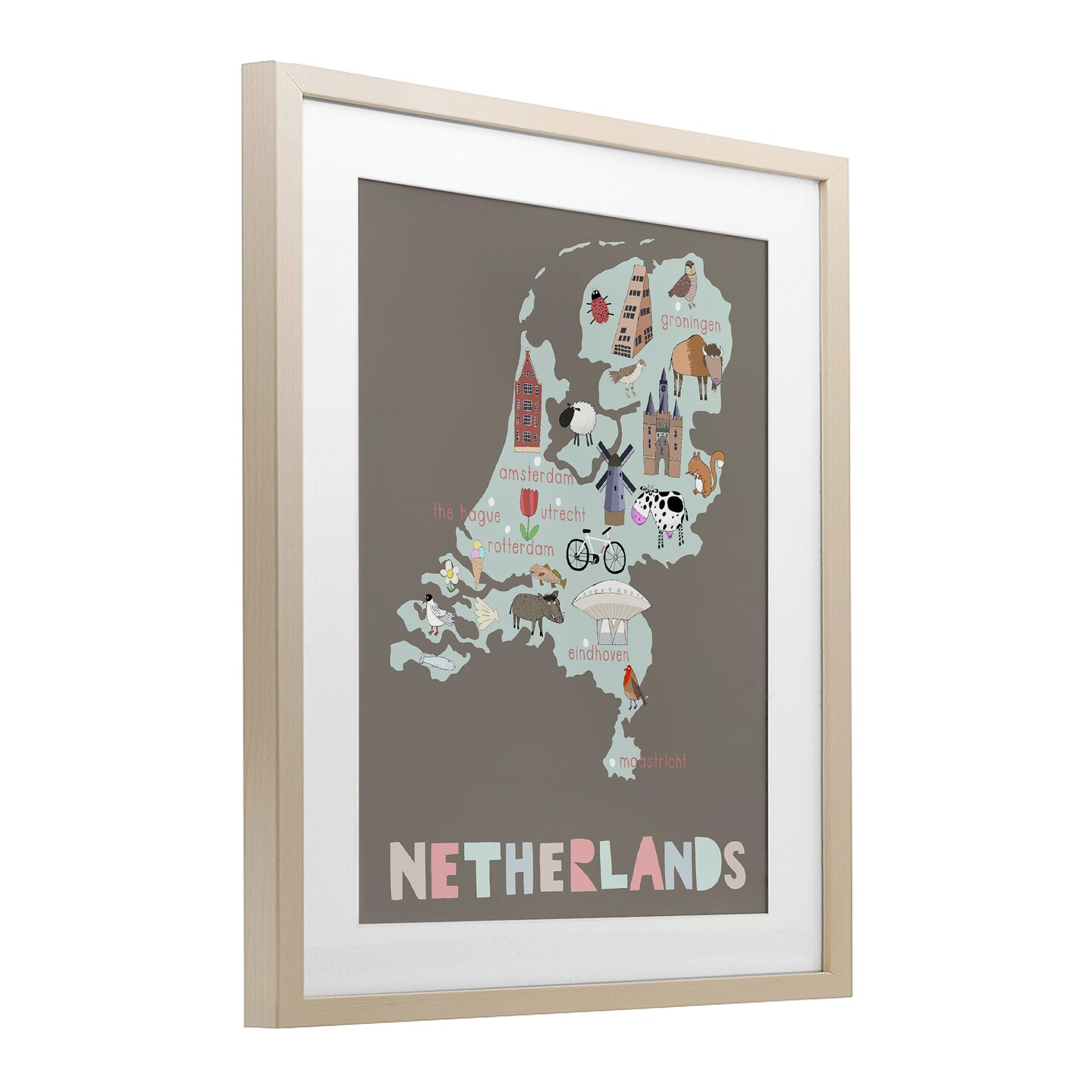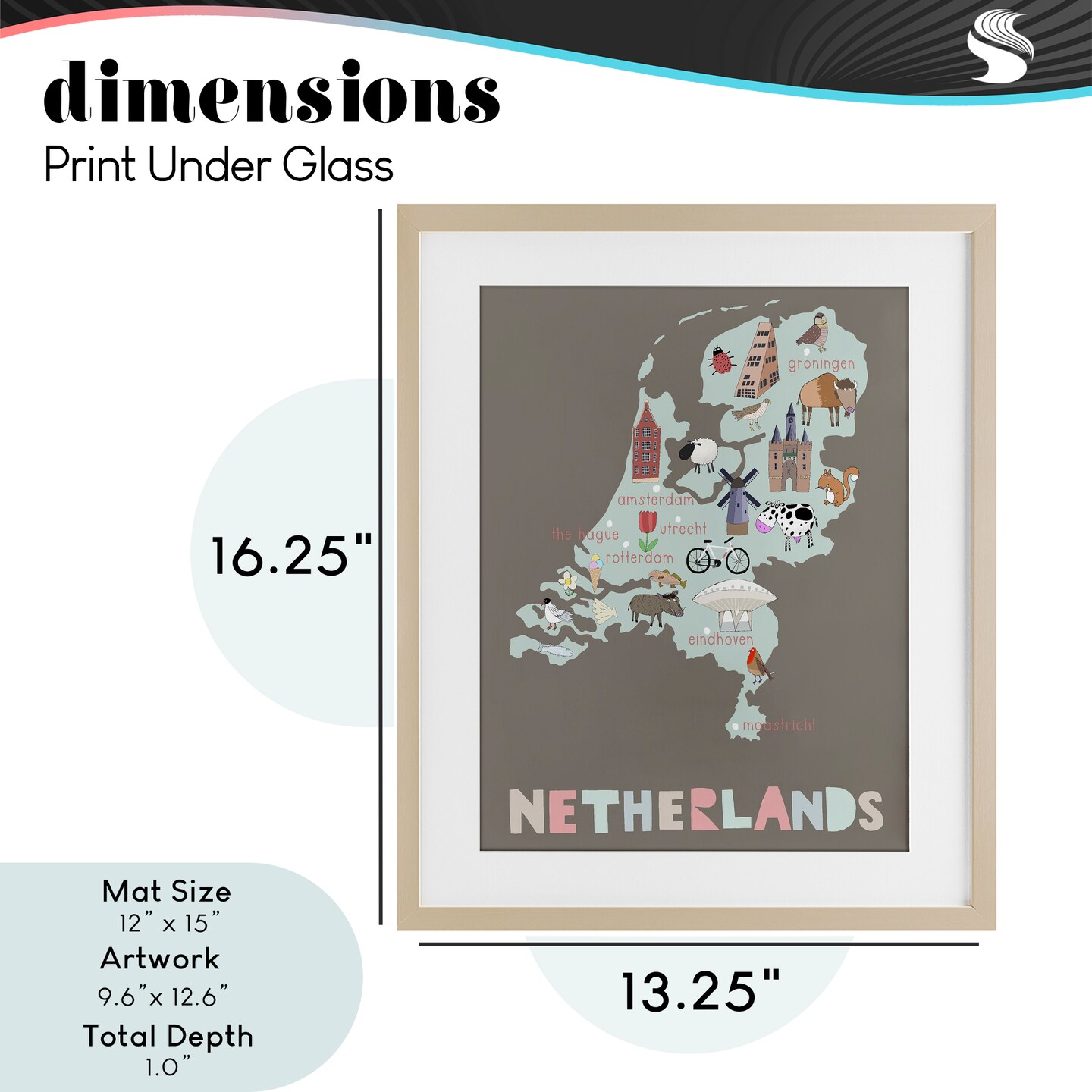 Stupell Industries Kid's Map of Netherlands Framed Print Under Glass, design by Carla Daly
