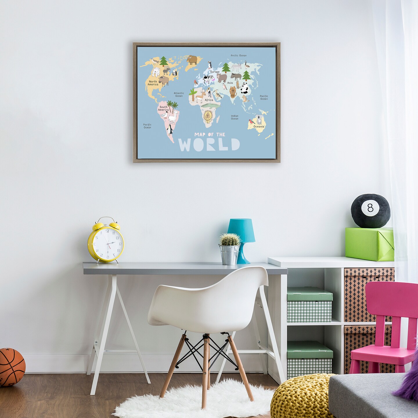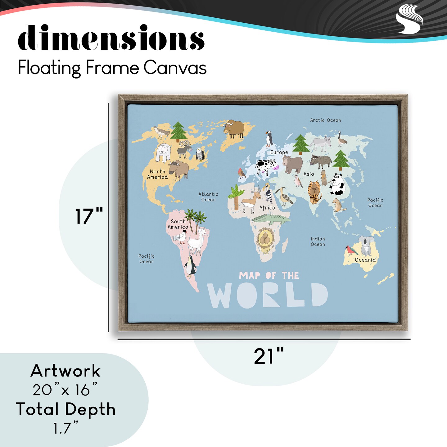 Stupell Industries Kid's Map Of World Blue Floating Frame, design by Carla Daly