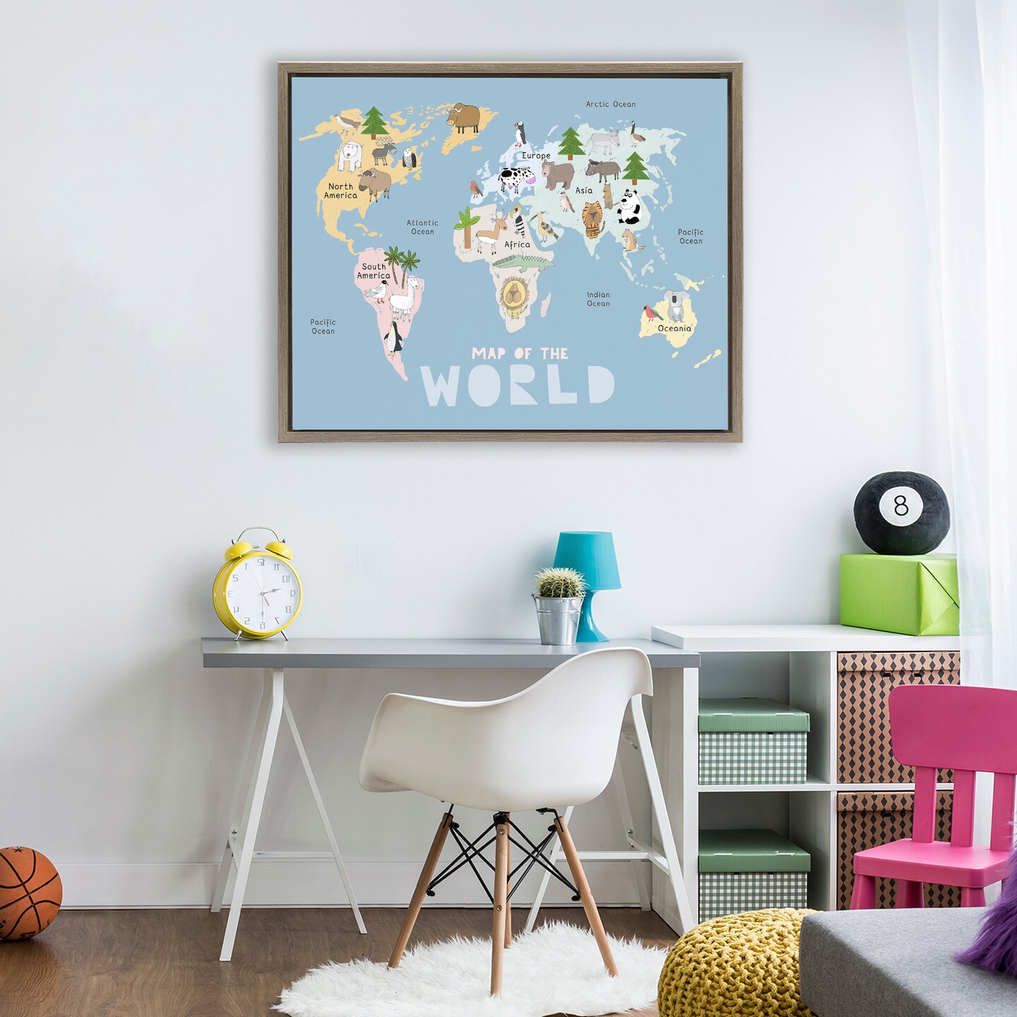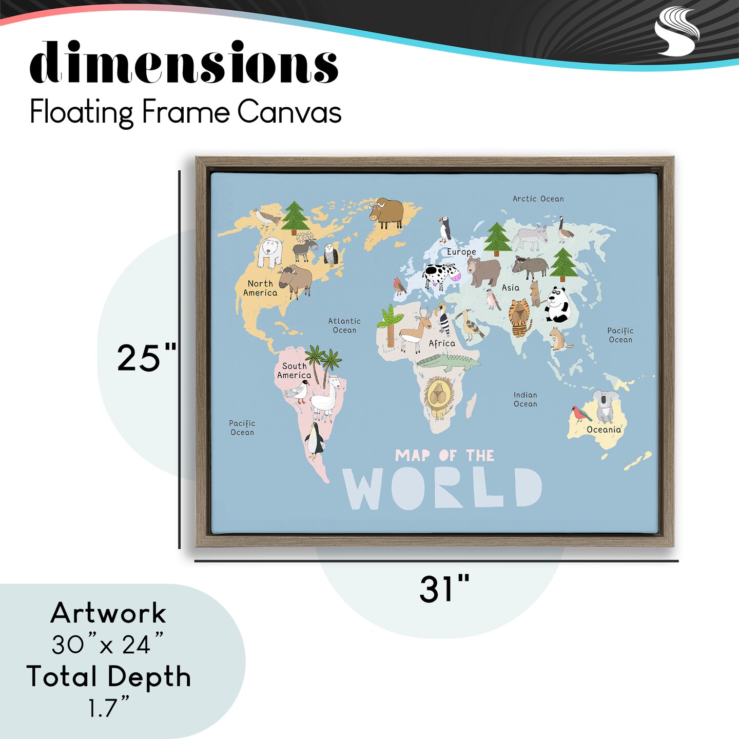 Stupell Industries Kid's Map Of World Blue Floating Frame, design by Carla Daly