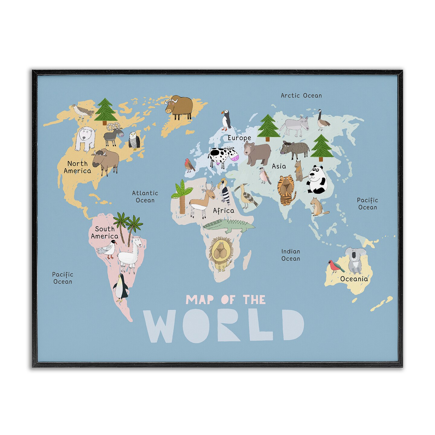 Stupell Industries Kid's Map Of World Blue Framed Giclee, design by Carla Daly