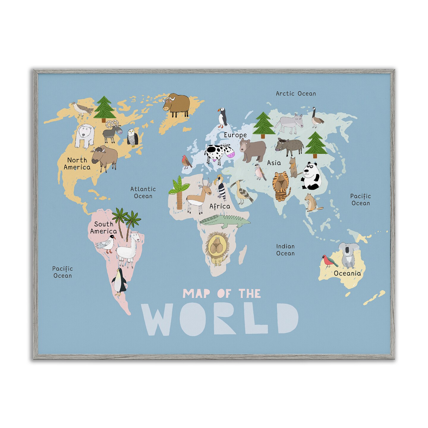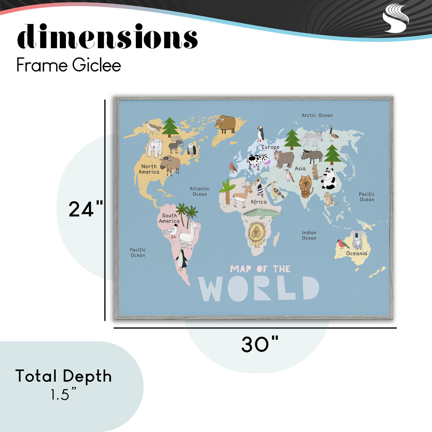 Stupell Industries Kid's Map Of World Blue Framed Giclee, design by Carla Daly