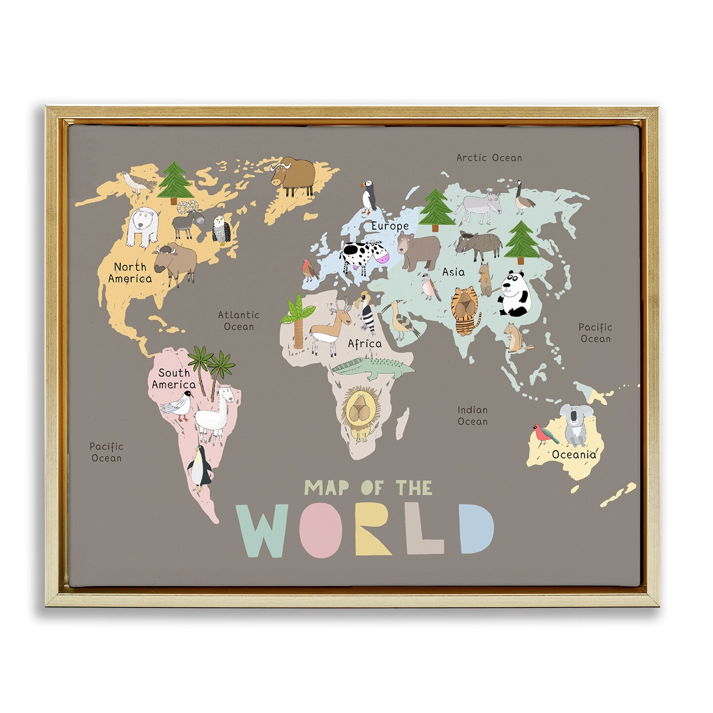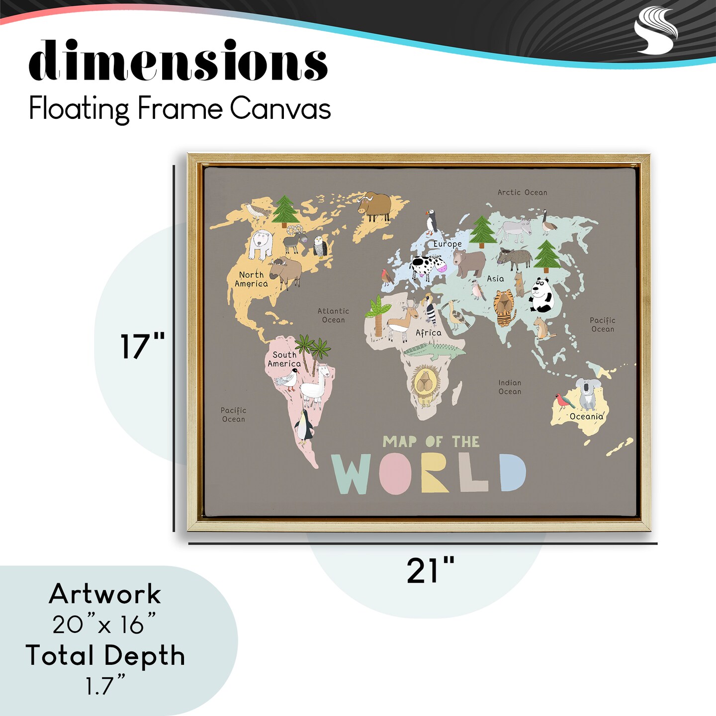 Stupell Industries Kid's Map Of World Brown Floating Frame, design by Carla Daly