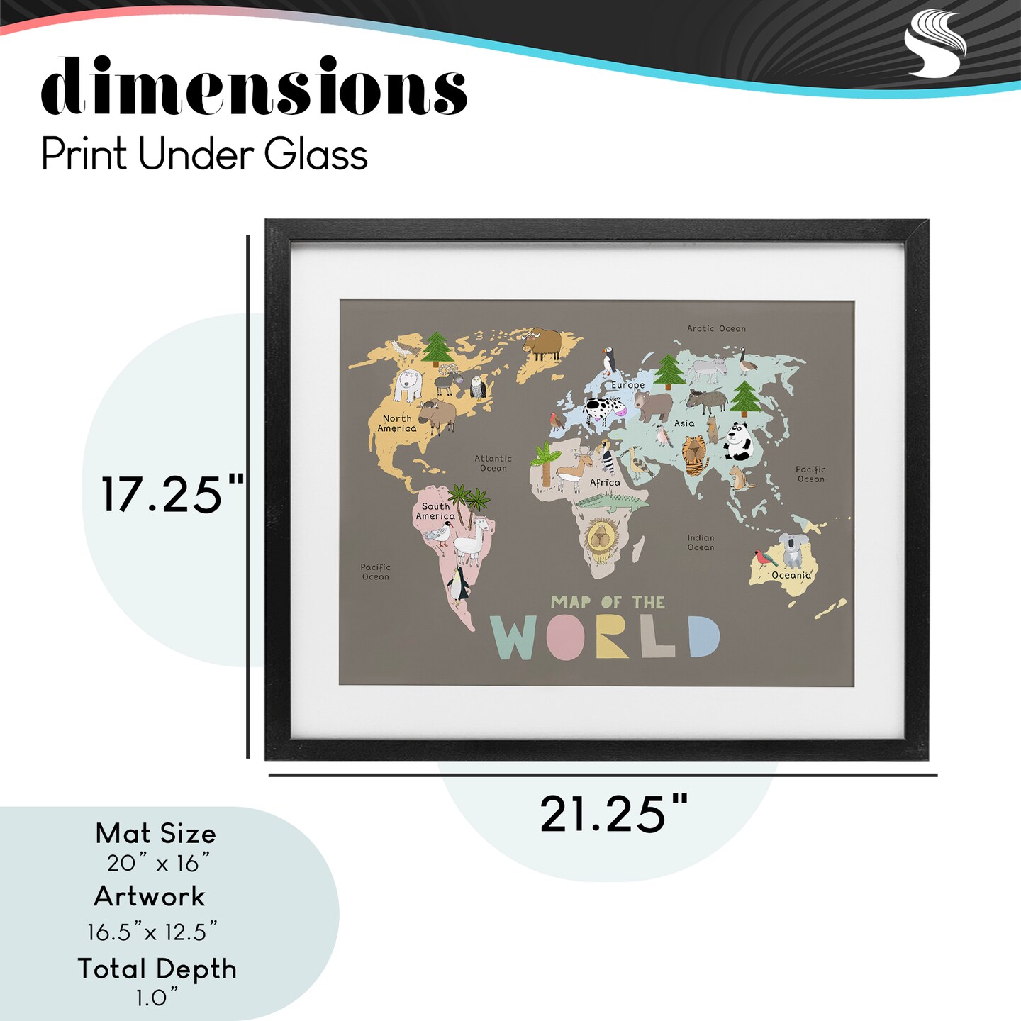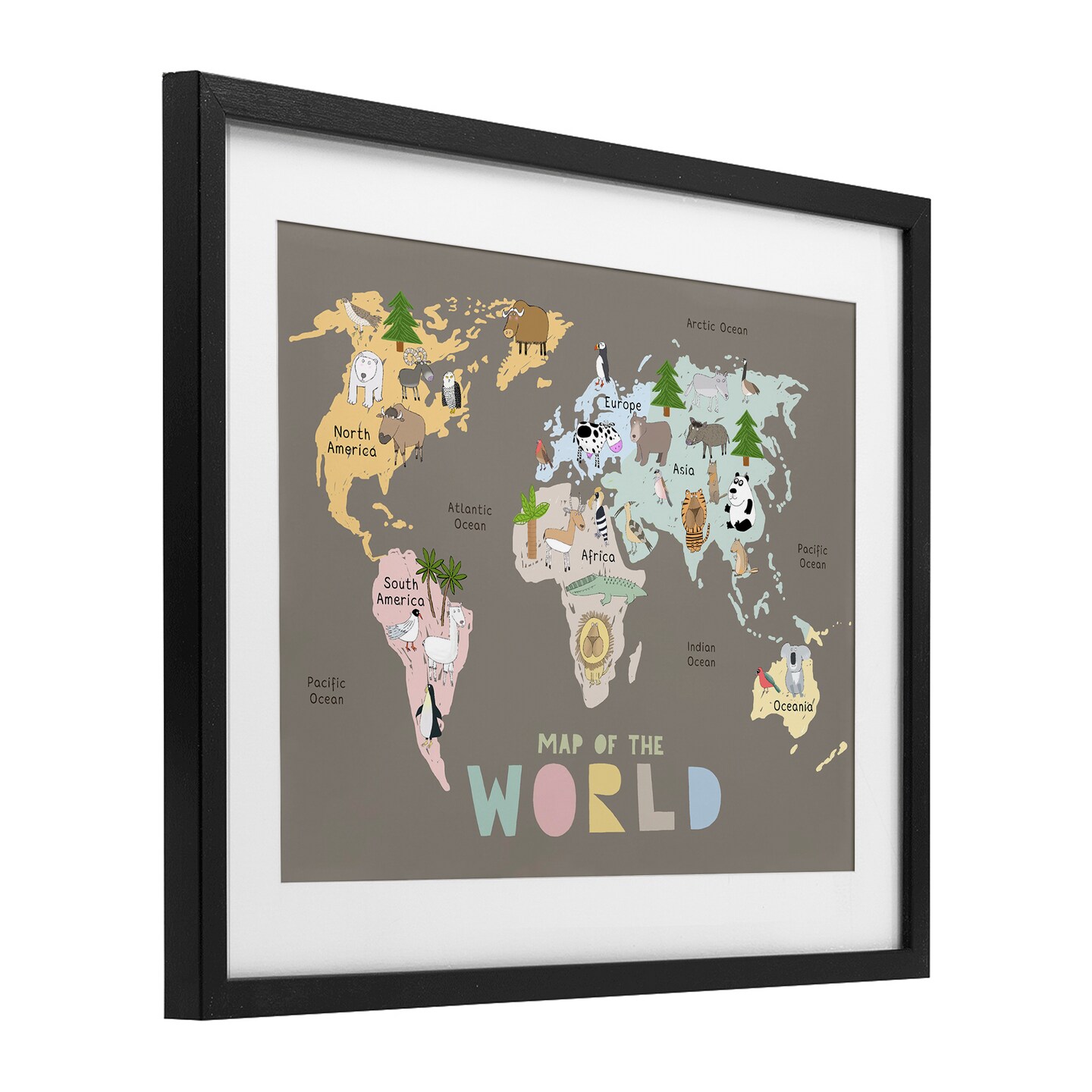 Stupell Industries Kid's Map Of World Brown Framed Print Under Glass, design by Carla Daly