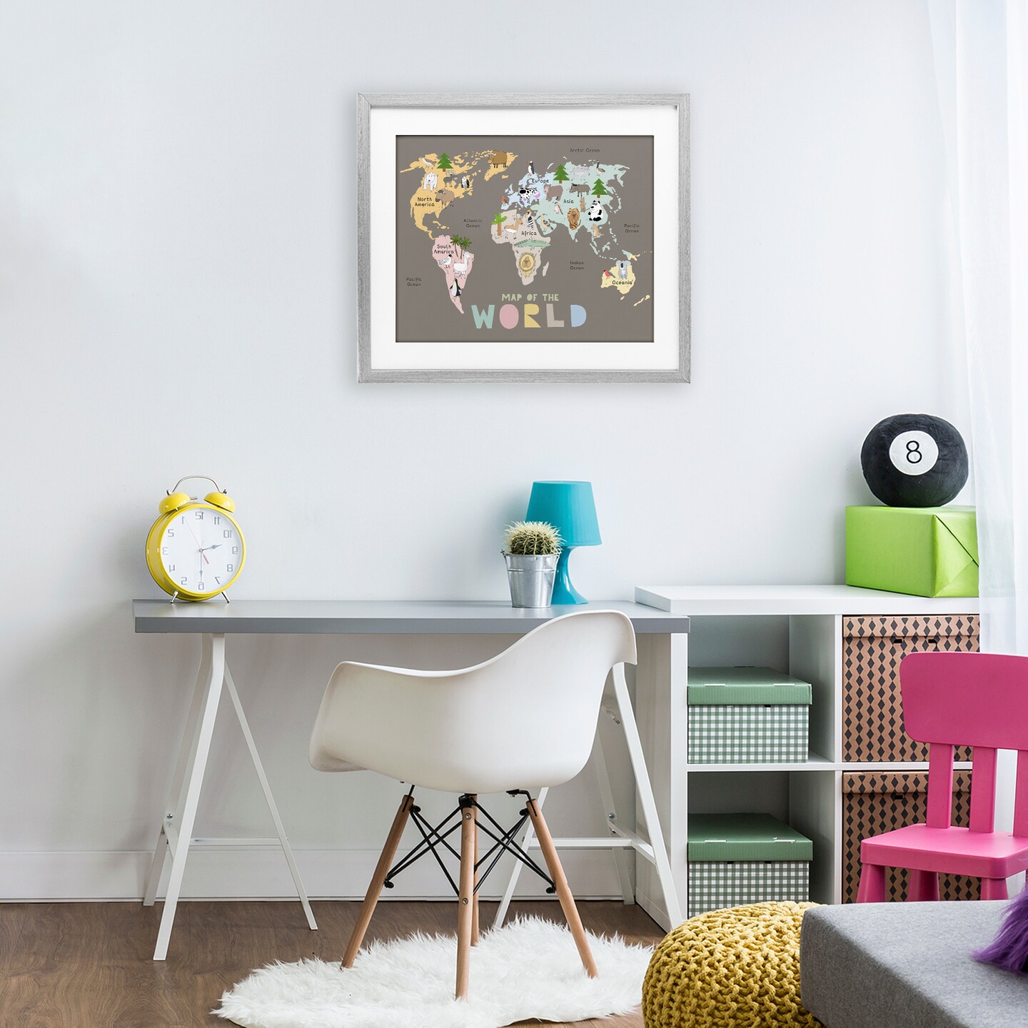 Stupell Industries Kid's Map Of World Brown Framed Print Under Glass, design by Carla Daly