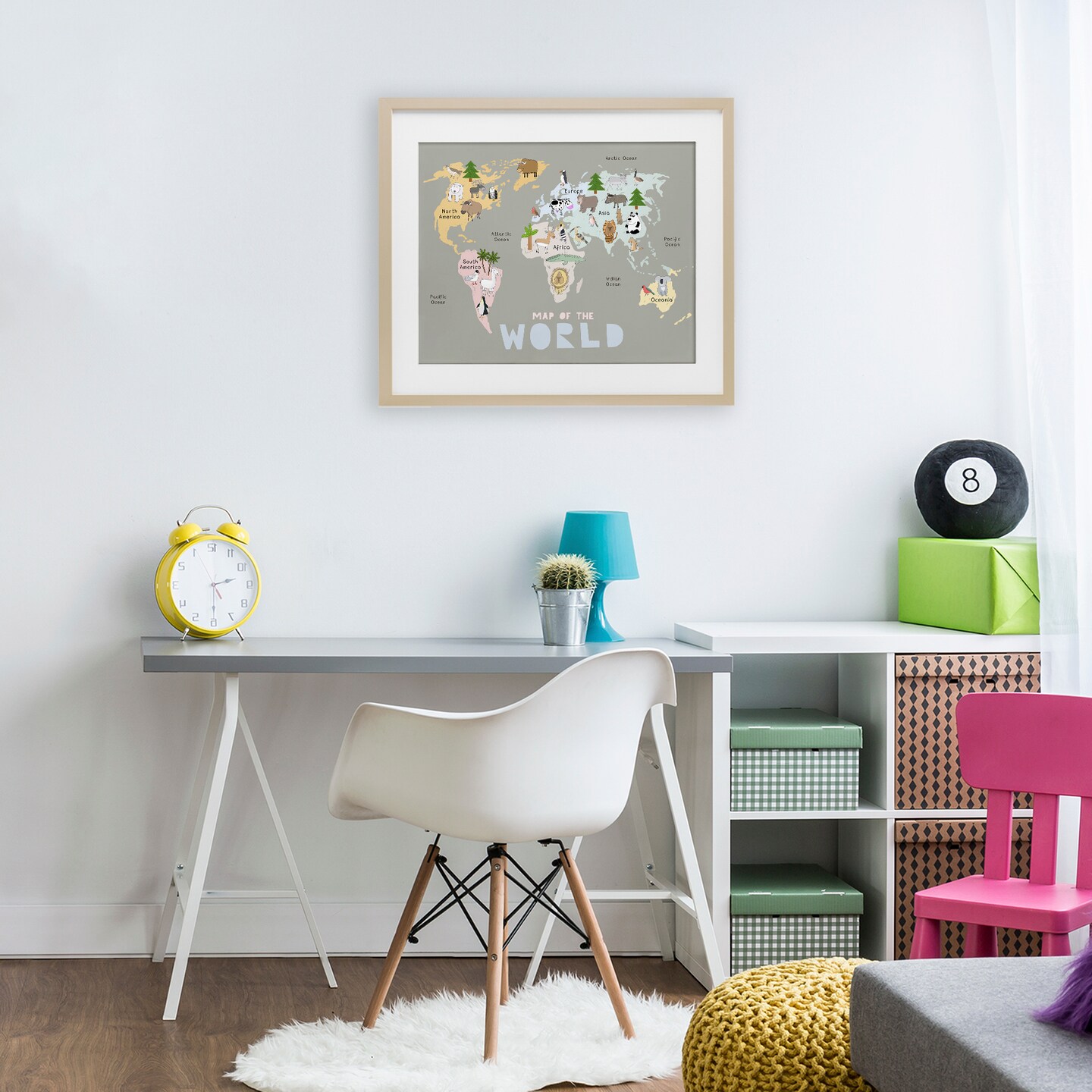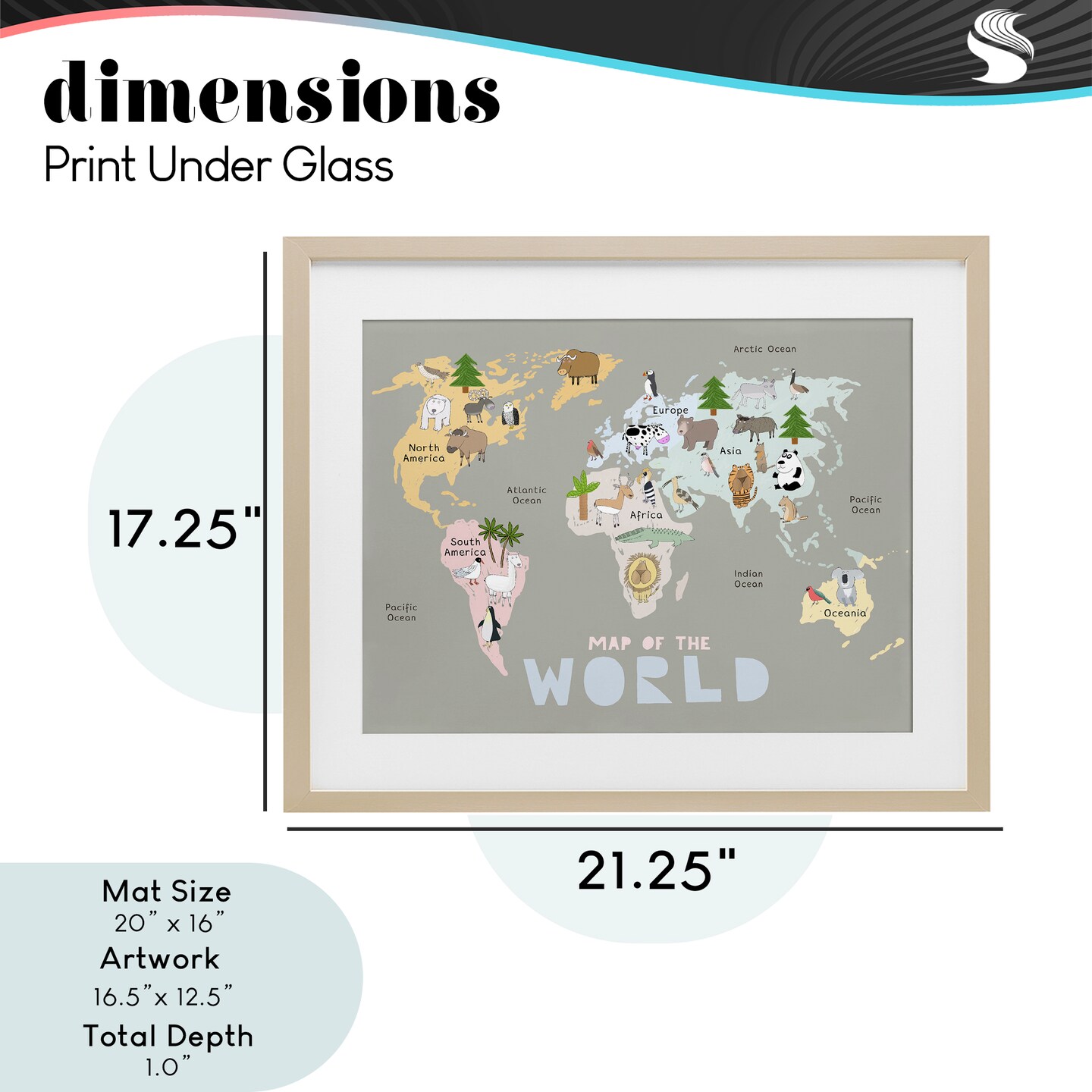 Stupell Industries Kid's Map Of World Grey Framed Print Under Glass, design by Carla Daly