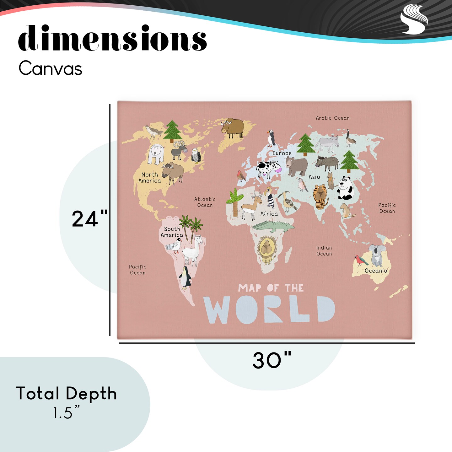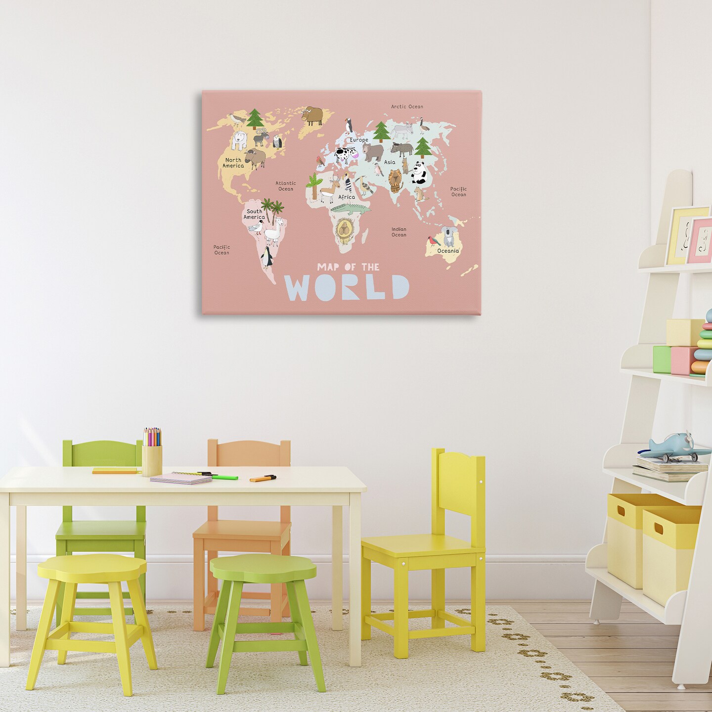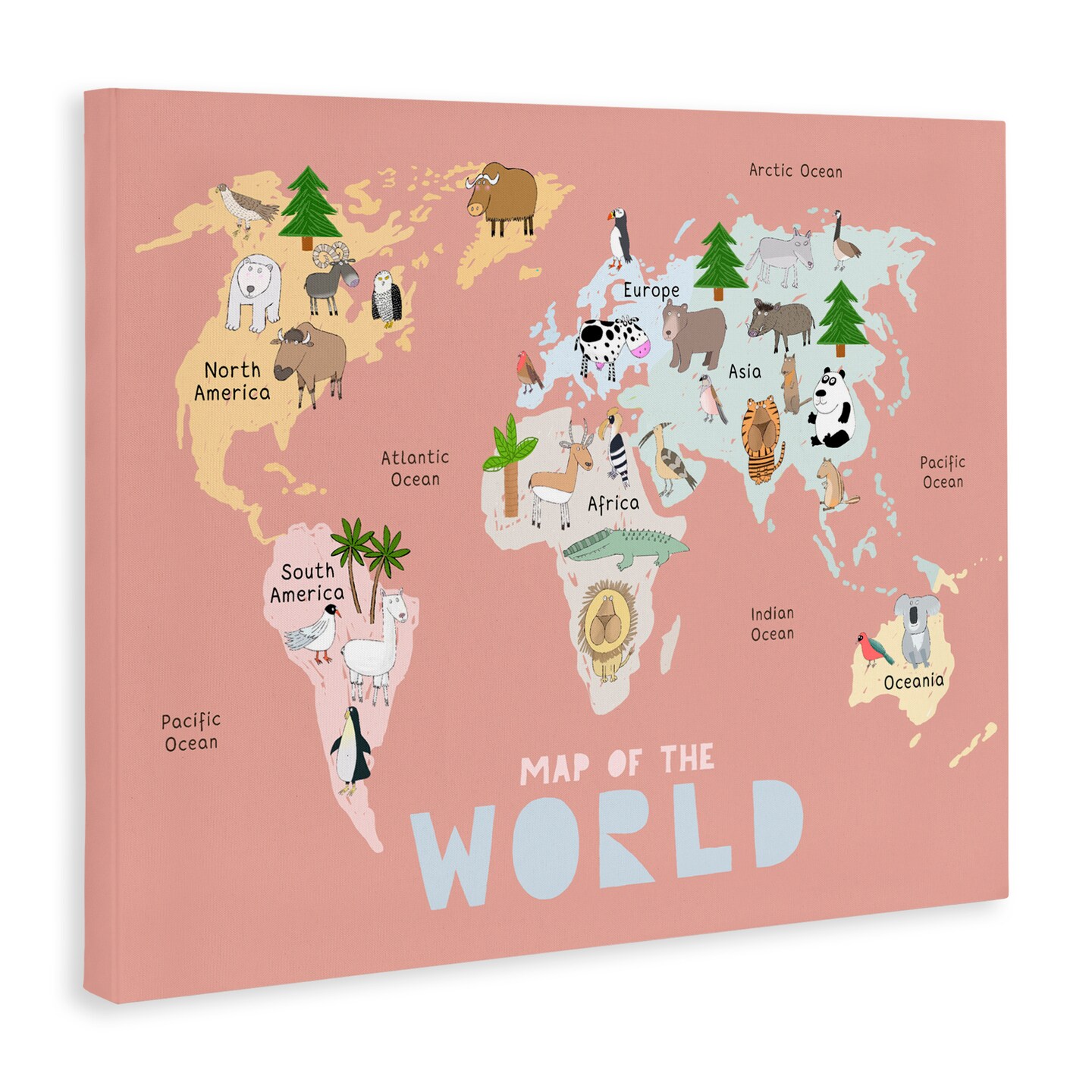 Stupell Industries Kid's Map Of World Pink Canvas, design by Carla Daly