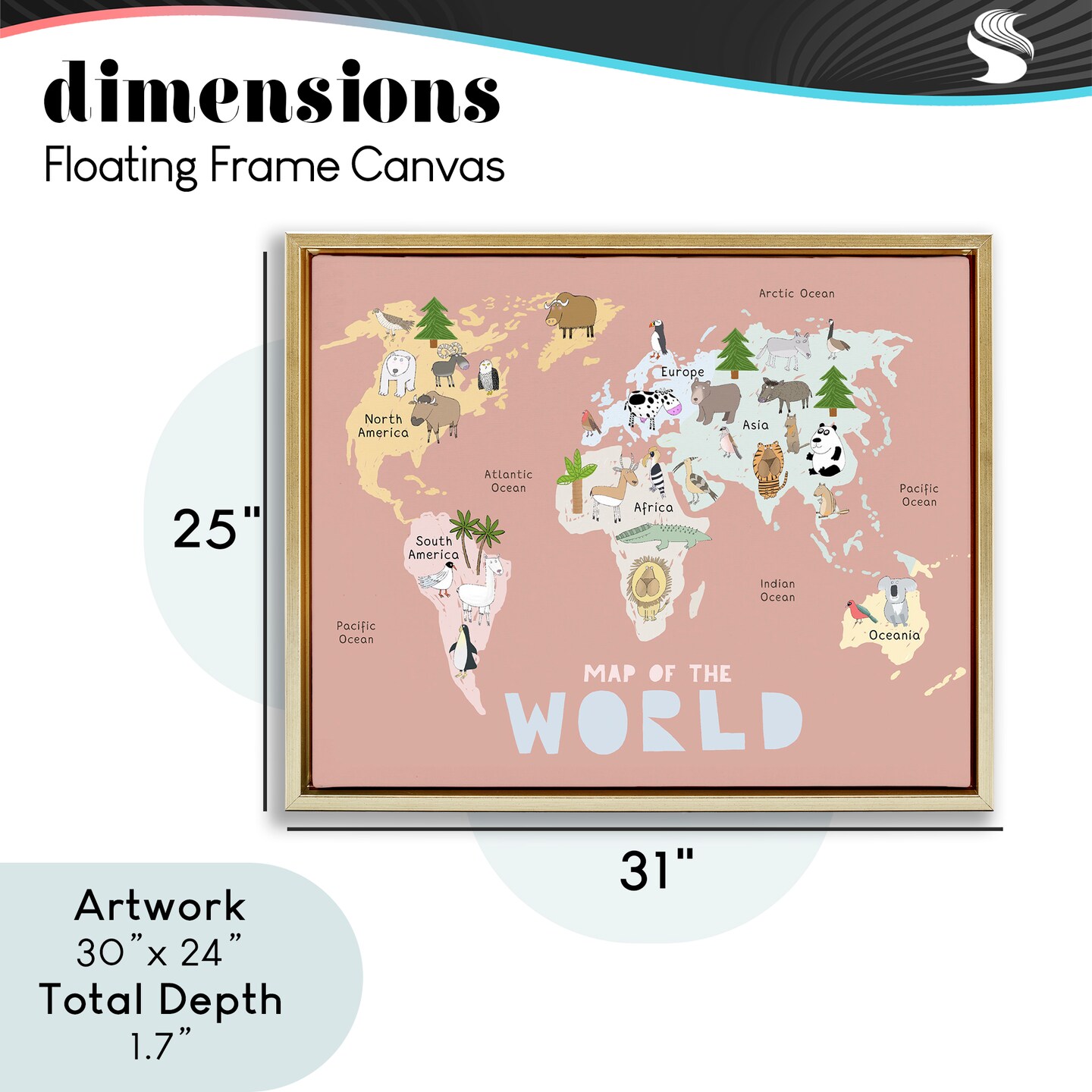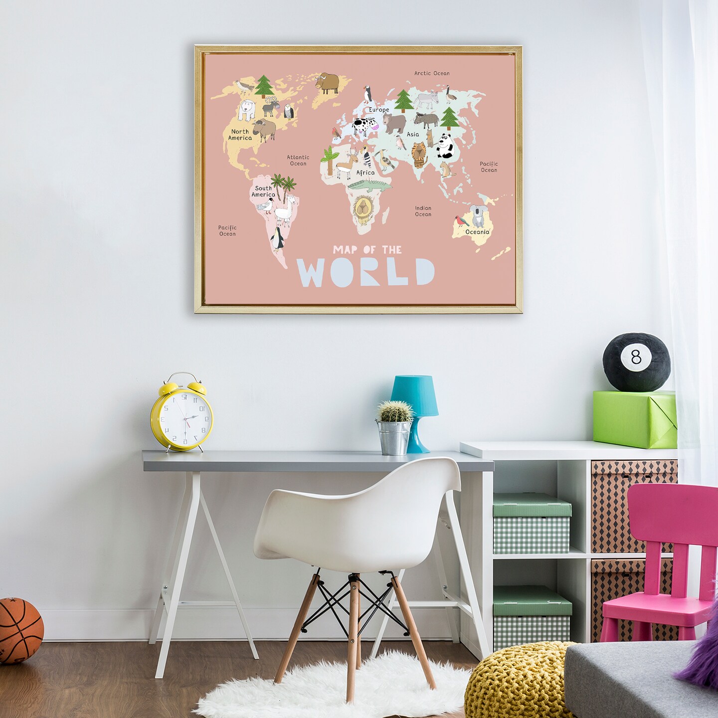 Stupell Industries Kid's Map Of World Pink Floating Frame, design by Carla Daly