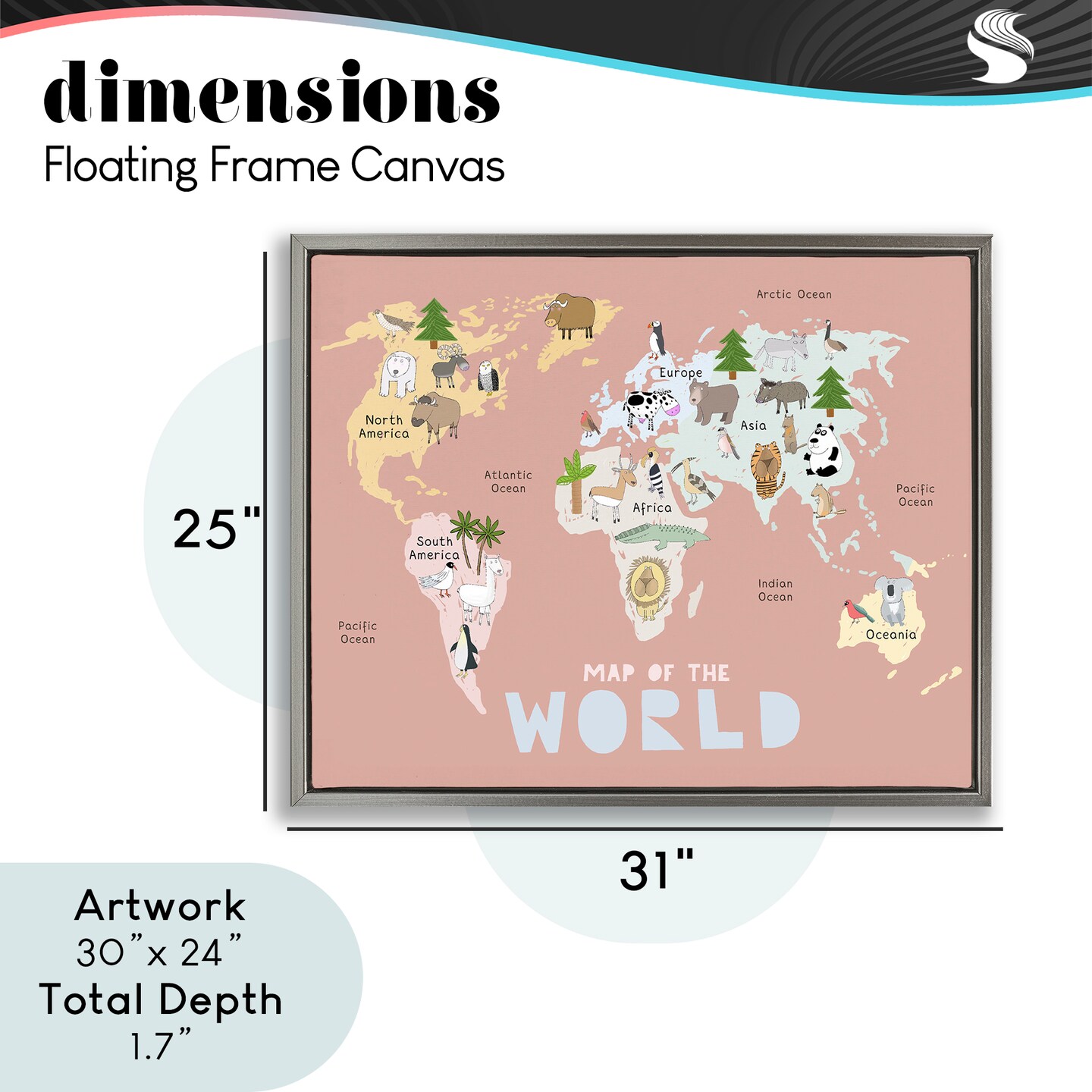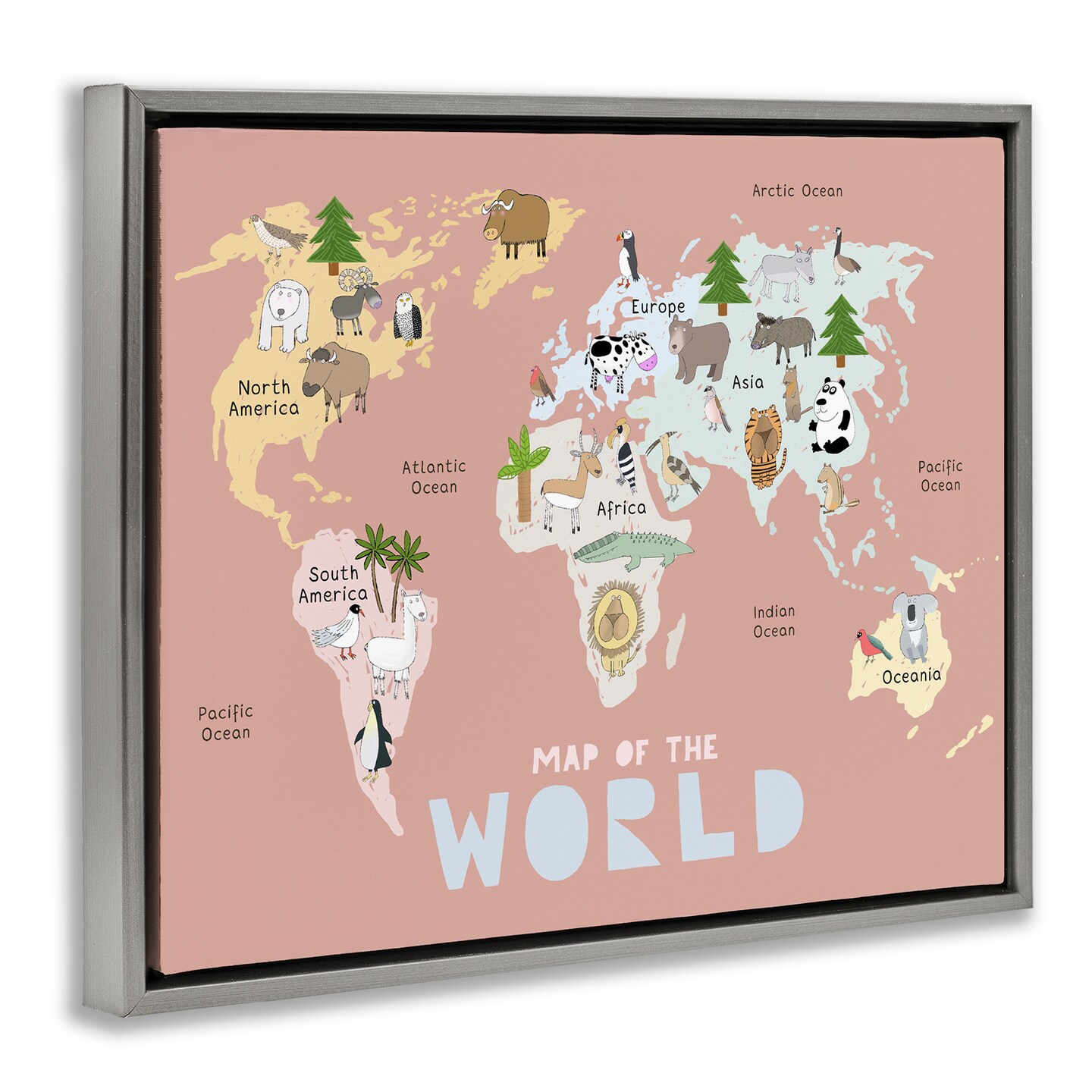 Stupell Industries Kid's Map Of World Pink Floating Frame, design by Carla Daly