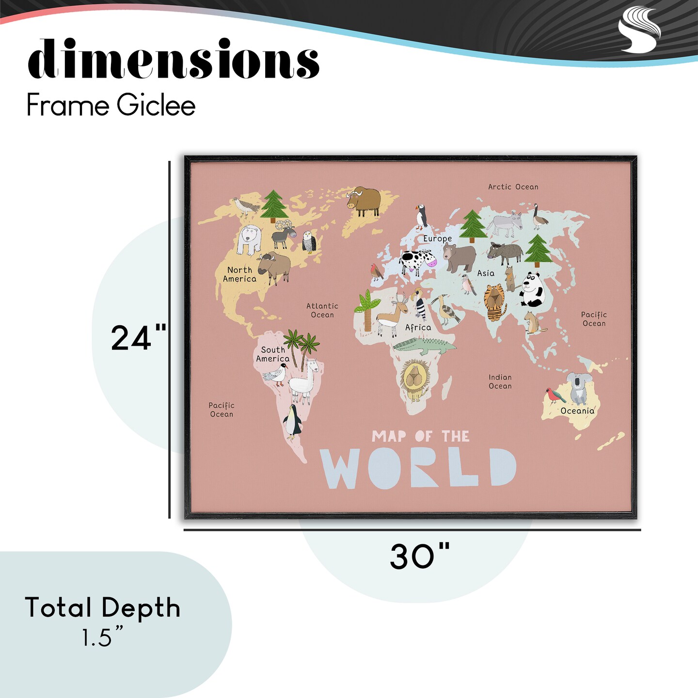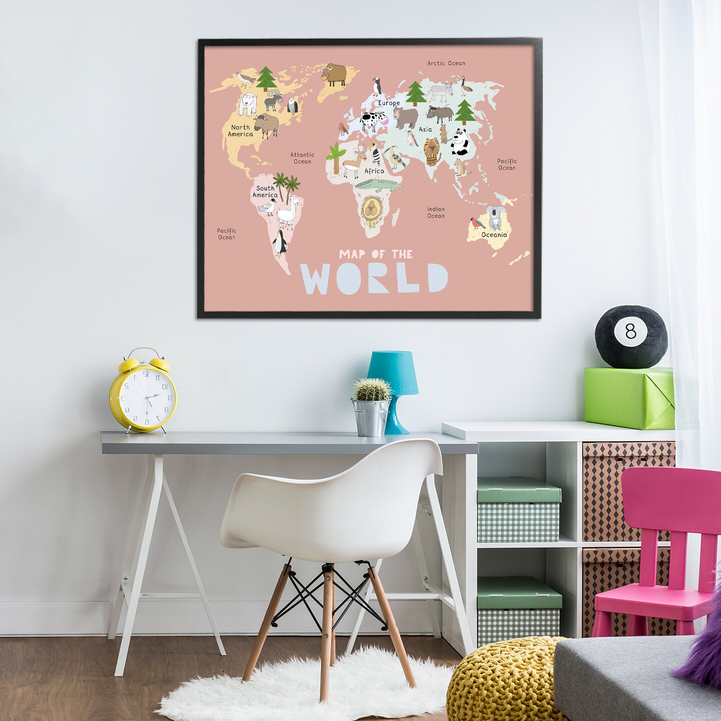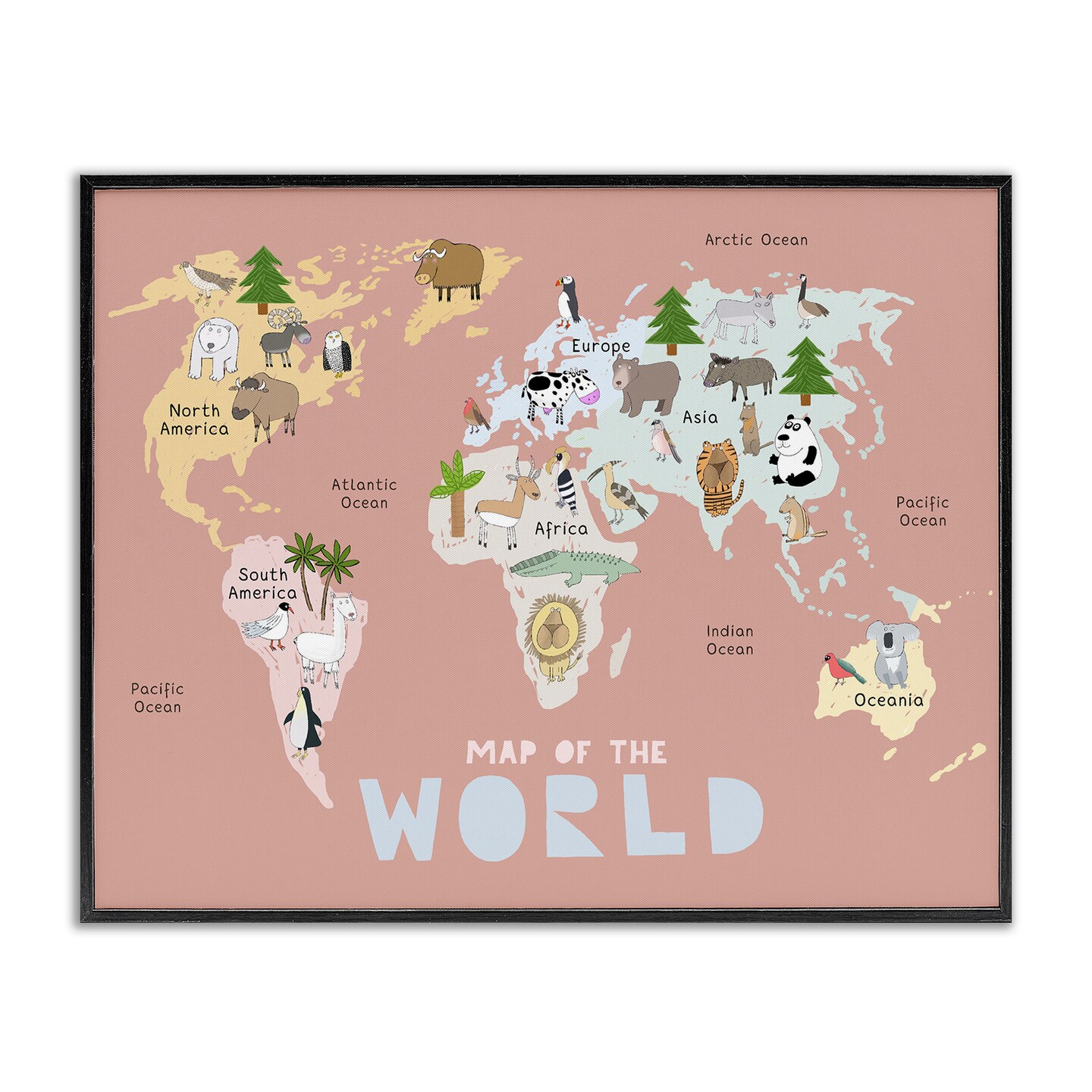 Stupell Industries Kid's Map Of World Pink Framed Giclee, design by Carla Daly