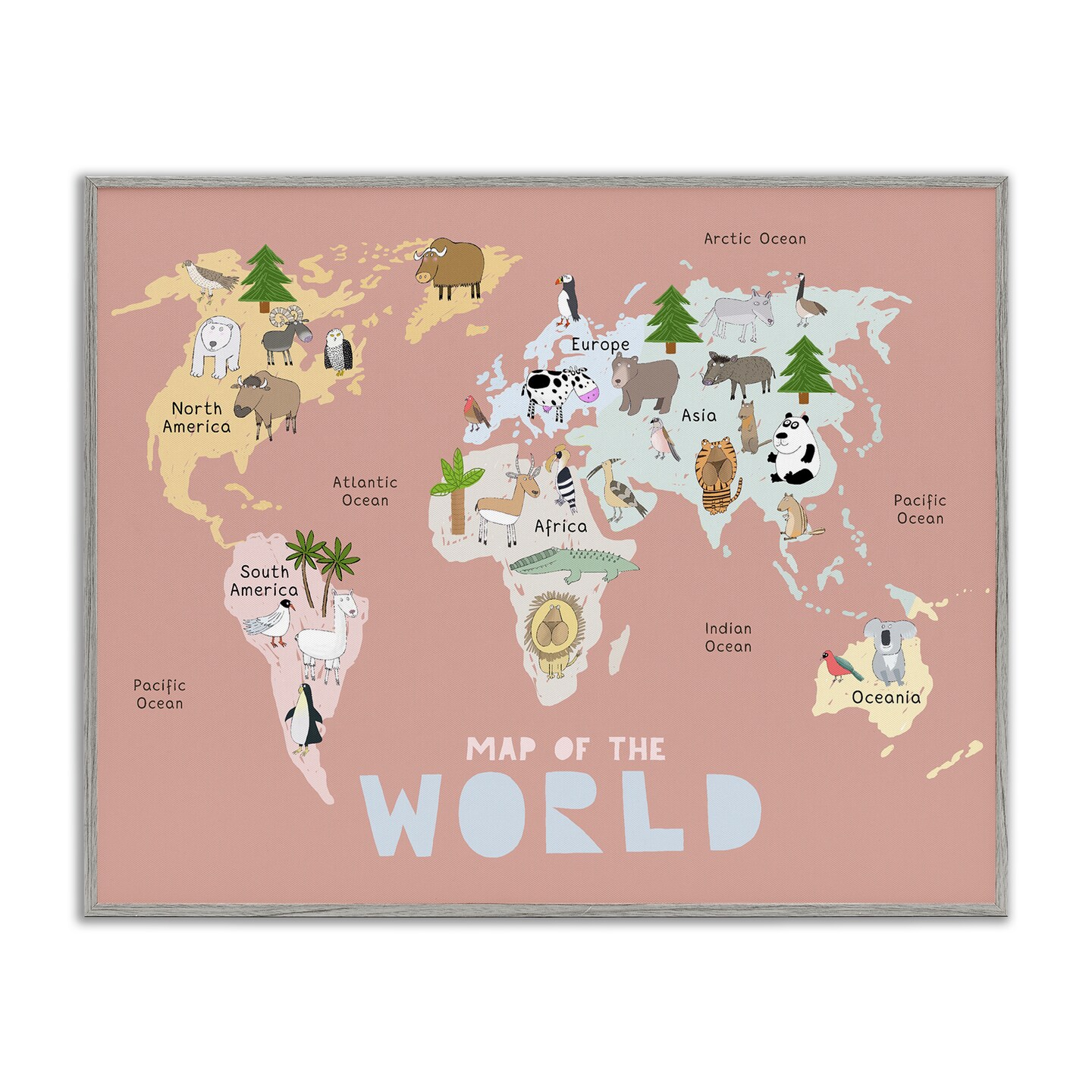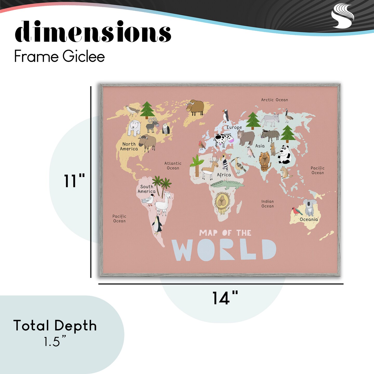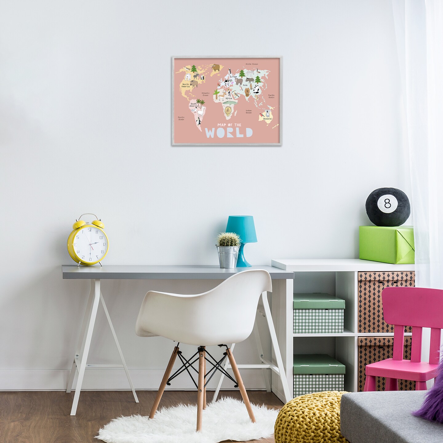 Stupell Industries Kid's Map Of World Pink Framed Giclee, design by Carla Daly