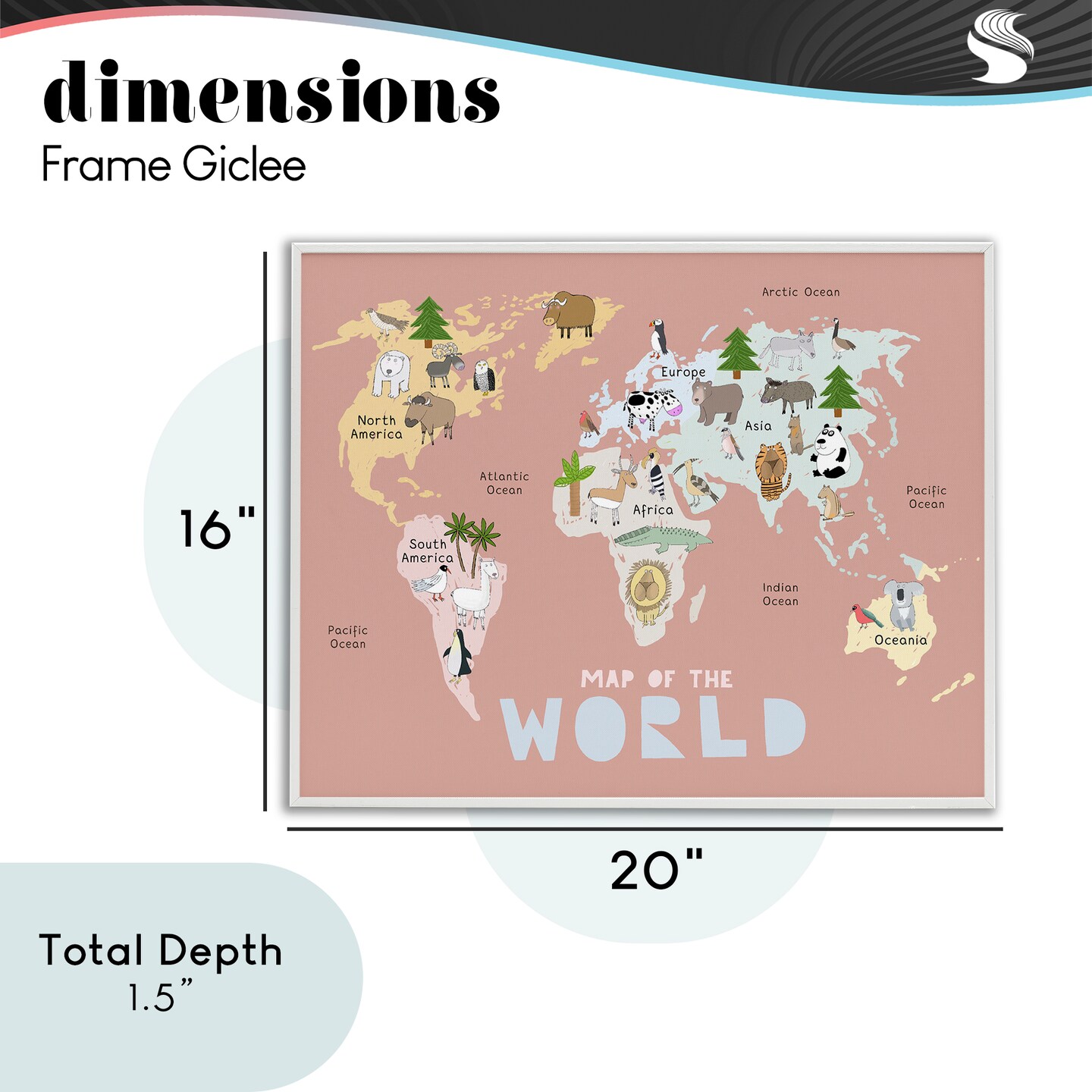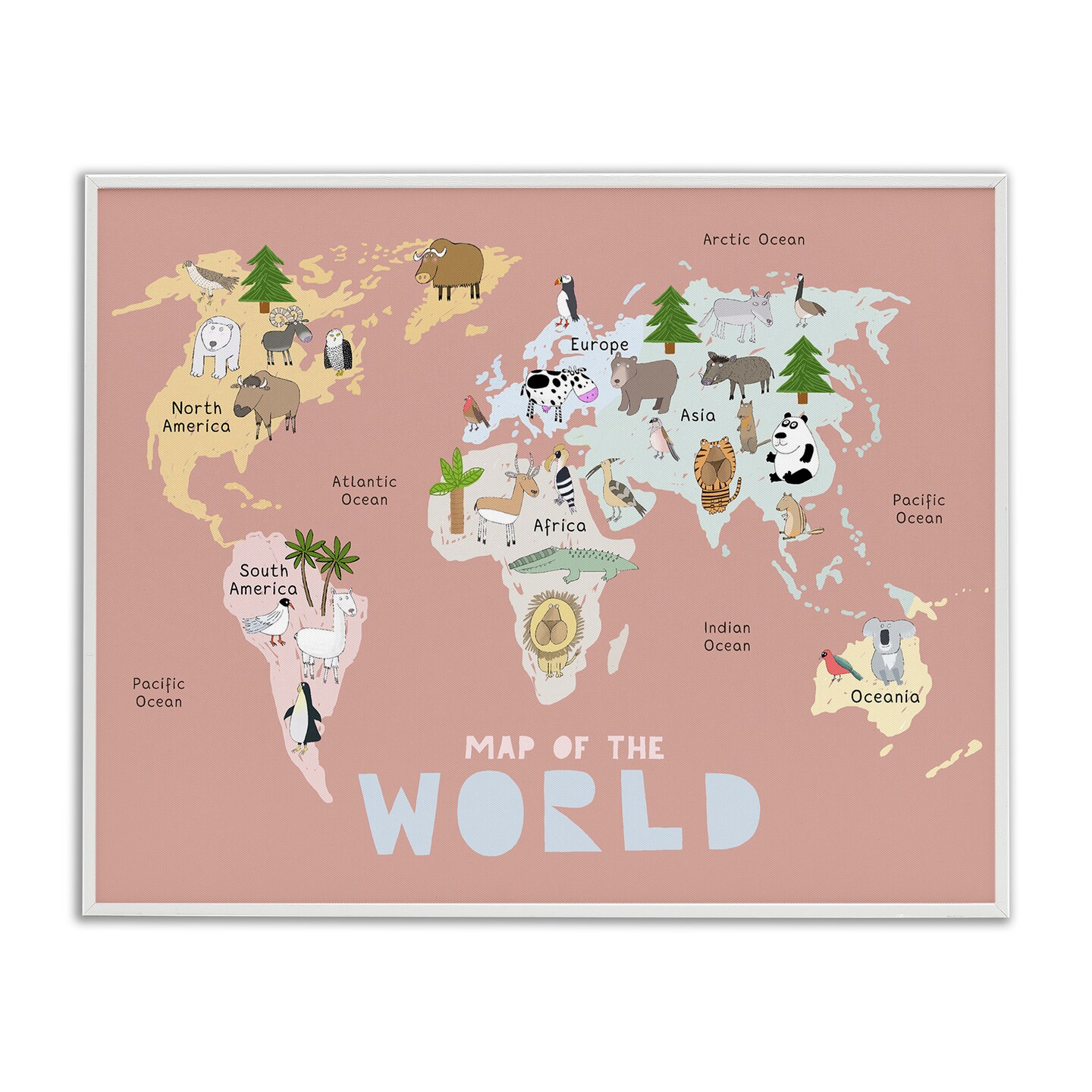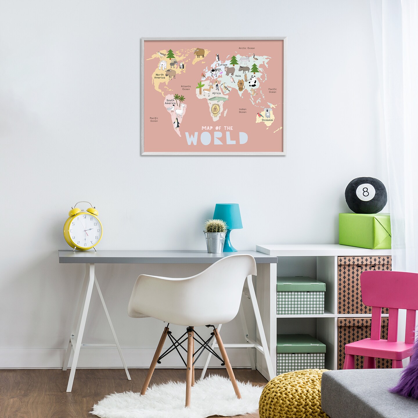 Stupell Industries Kid's Map Of World Pink Framed Giclee, design by Carla Daly