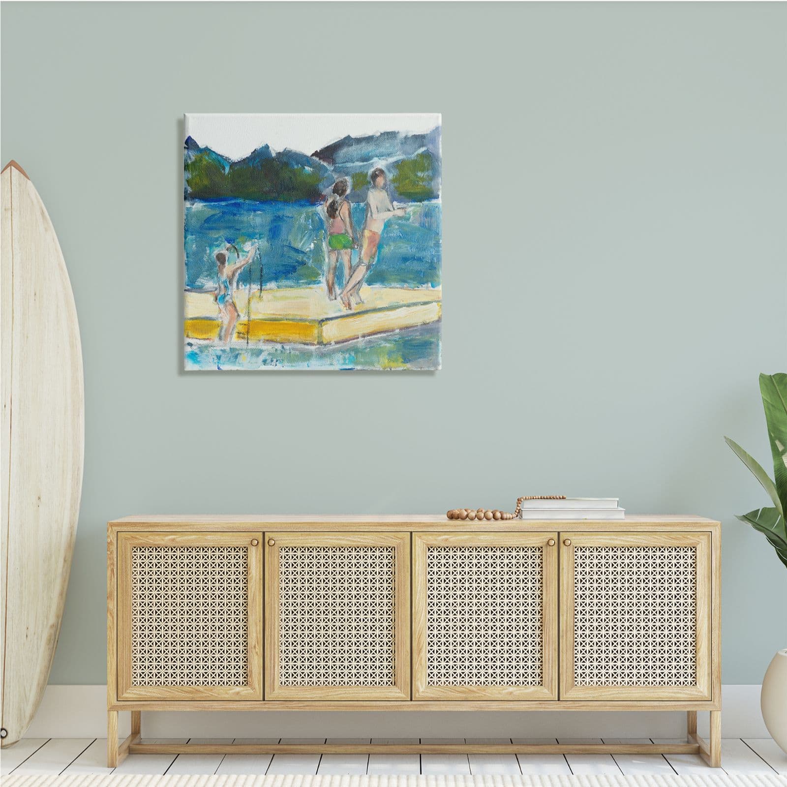 Stupell Industries Kids on Swimming Dock Abstract Contemporary Lake Scene Canvas Wall Art
