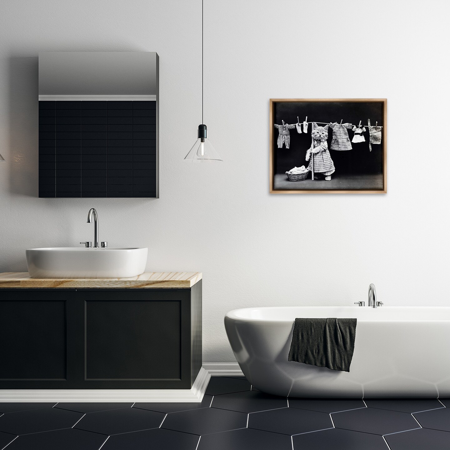 Stupell Industries Kitten Does The Laundry Framed Floater Canvas Wall Art