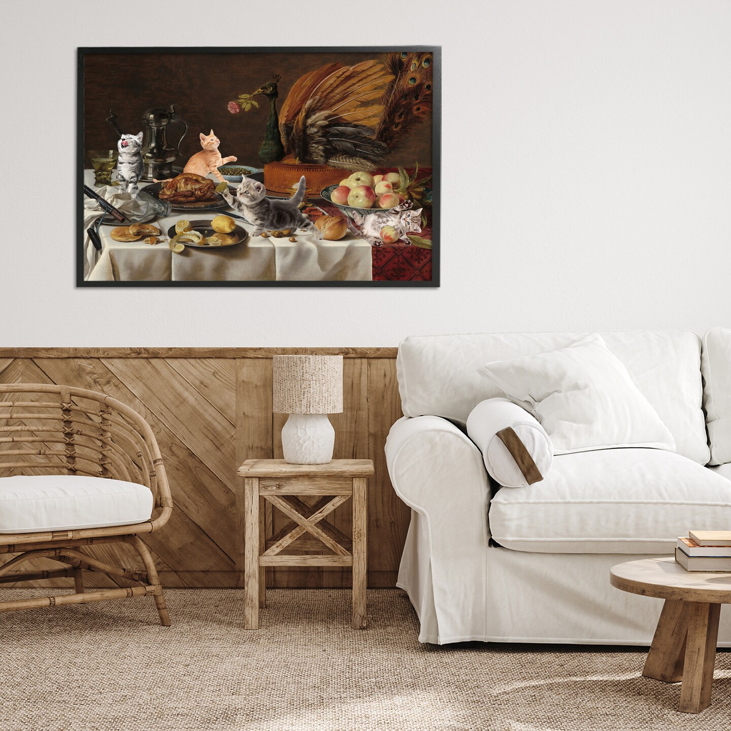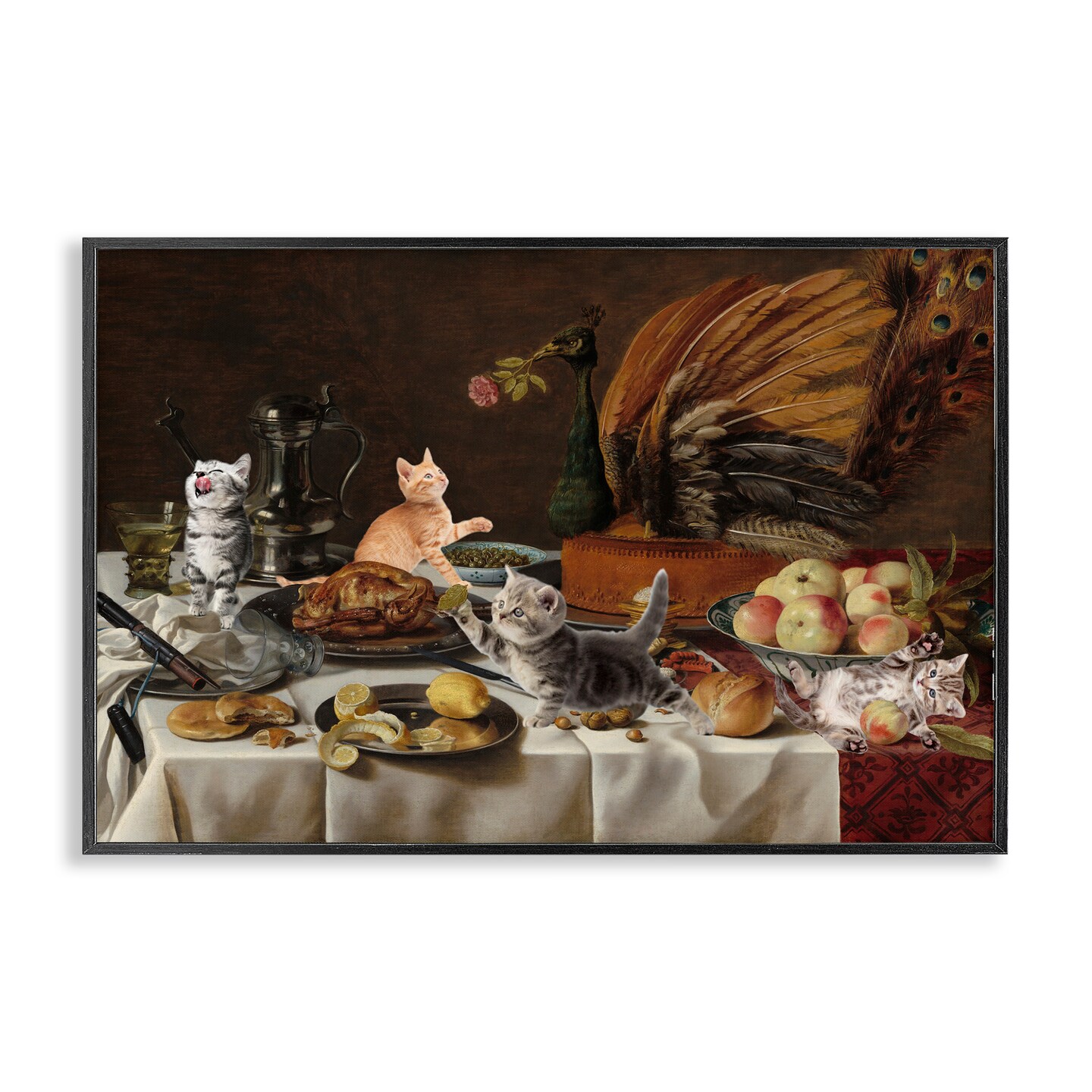 Stupell Industries Kittens on Still Life Feast Framed Giclee, design by Masters Redux