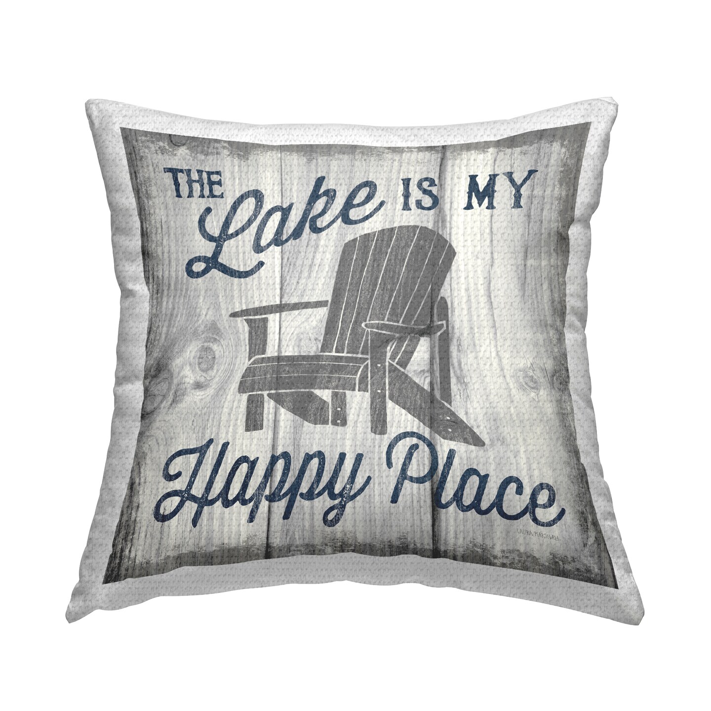 Stupell Industries Lake Is My Happy Place Phrase Outdoor Pillow, 18 x 7 x 18