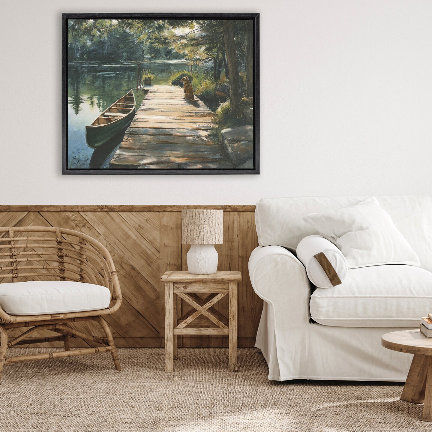 Stupell Industries Lake Life Dog on Dock Floating Frame, design by Sara Culpepper
