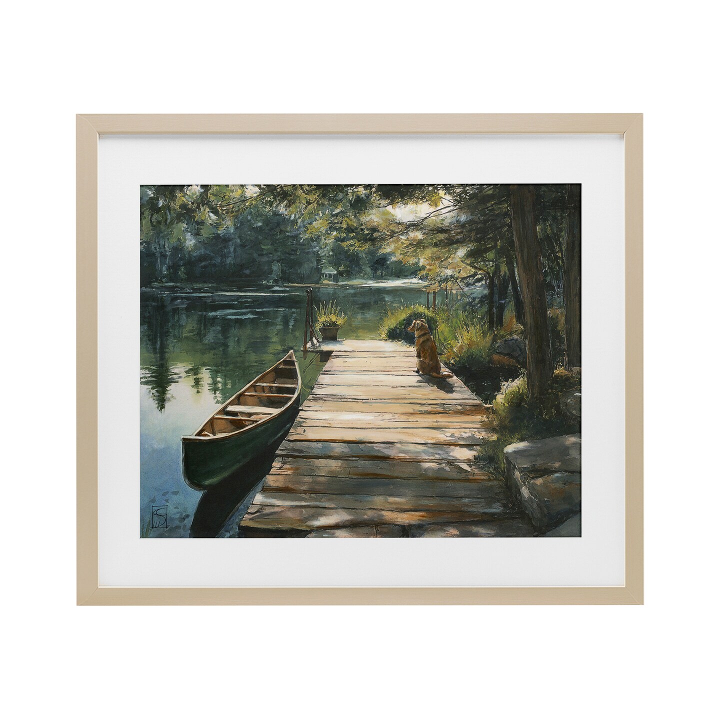 Stupell Industries Lake Life Dog on Dock Framed Print Under Glass, design by Sara Culpepper