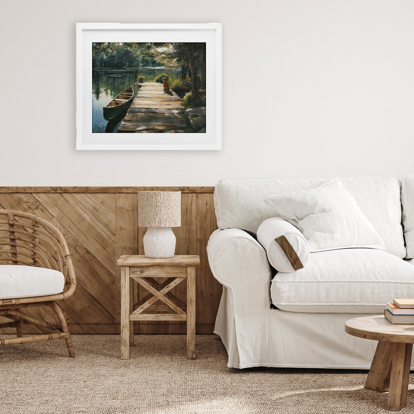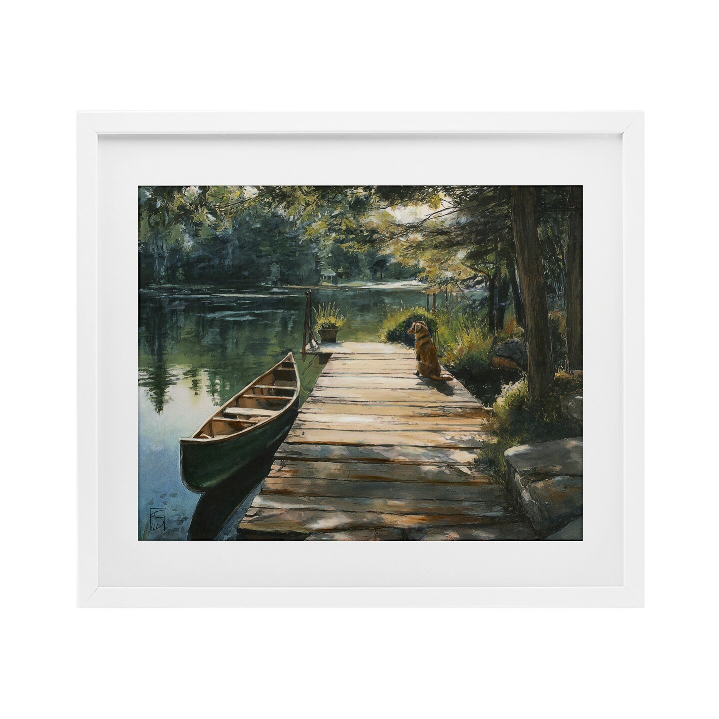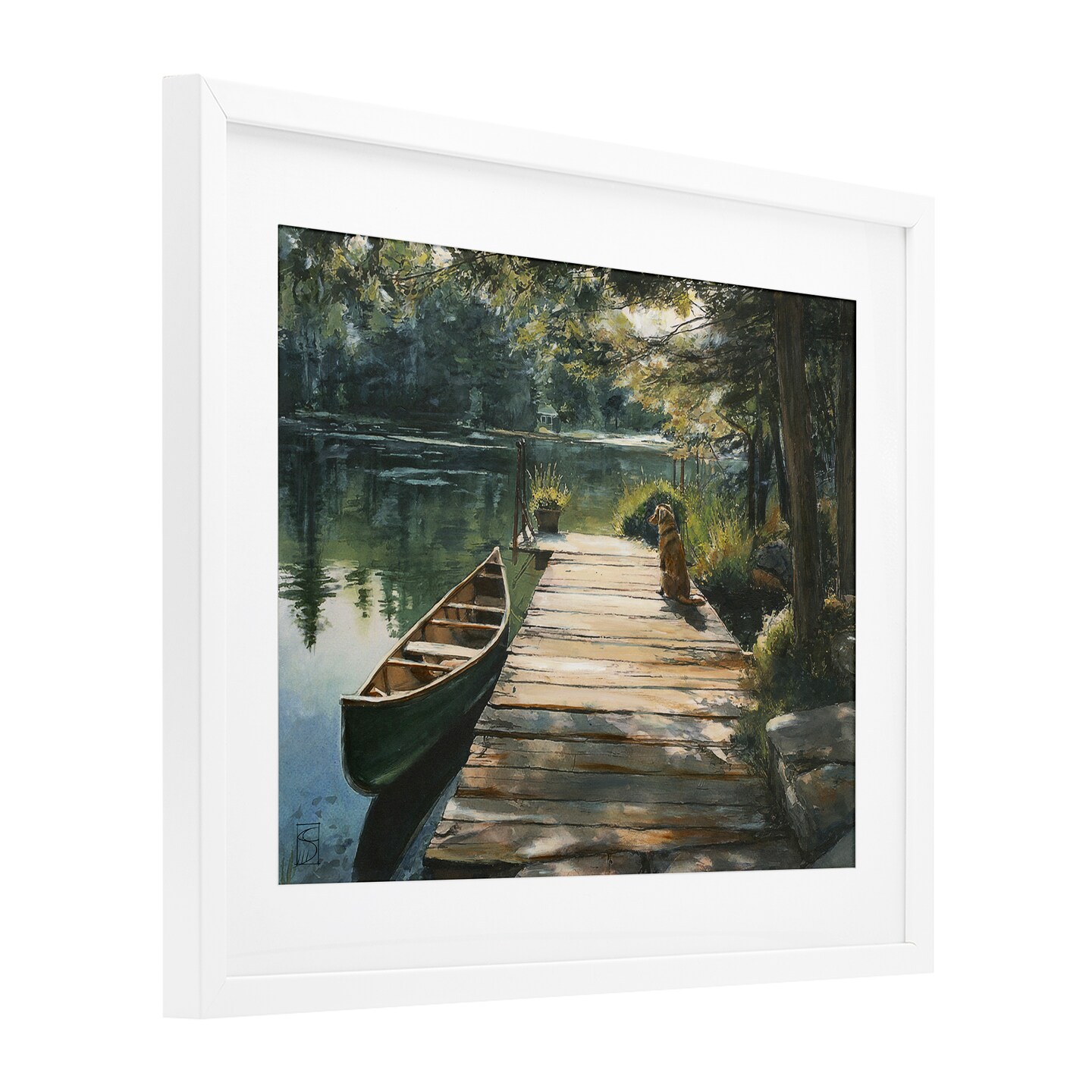 Stupell Industries Lake Life Dog on Dock Framed Print Under Glass, design by Sara Culpepper