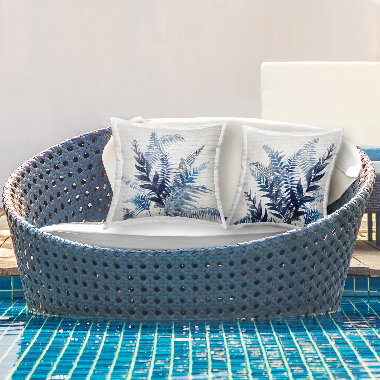 Stupell Industries Layered Palm Fronds in Blue 2 Piece Outdoor Printed Pillow Set, design by Jacob Q, 18 x 7 x 18