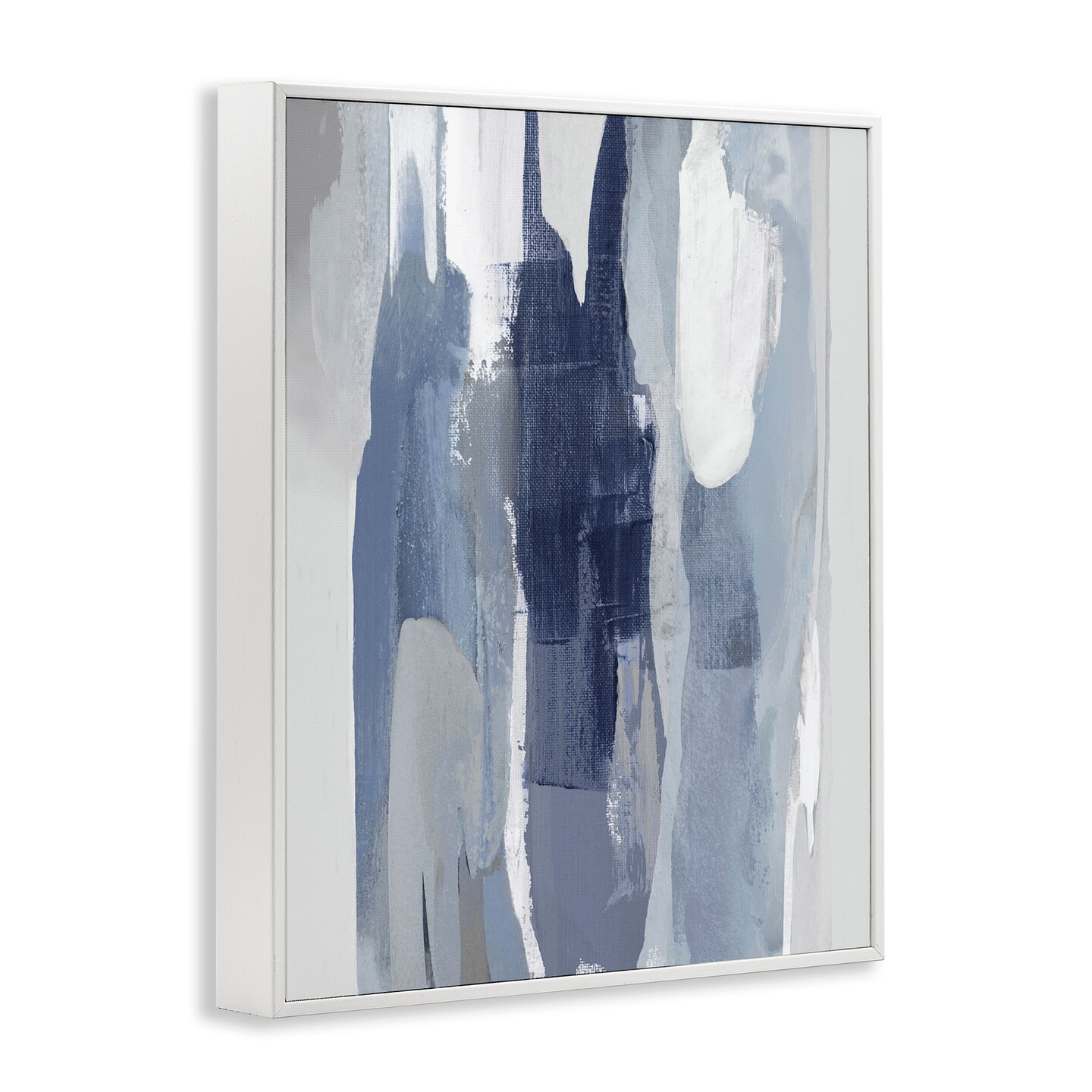 Stupell Industries Layers of Blue and White Abstract Movements Framed Giclee Design By Jackie Hanson