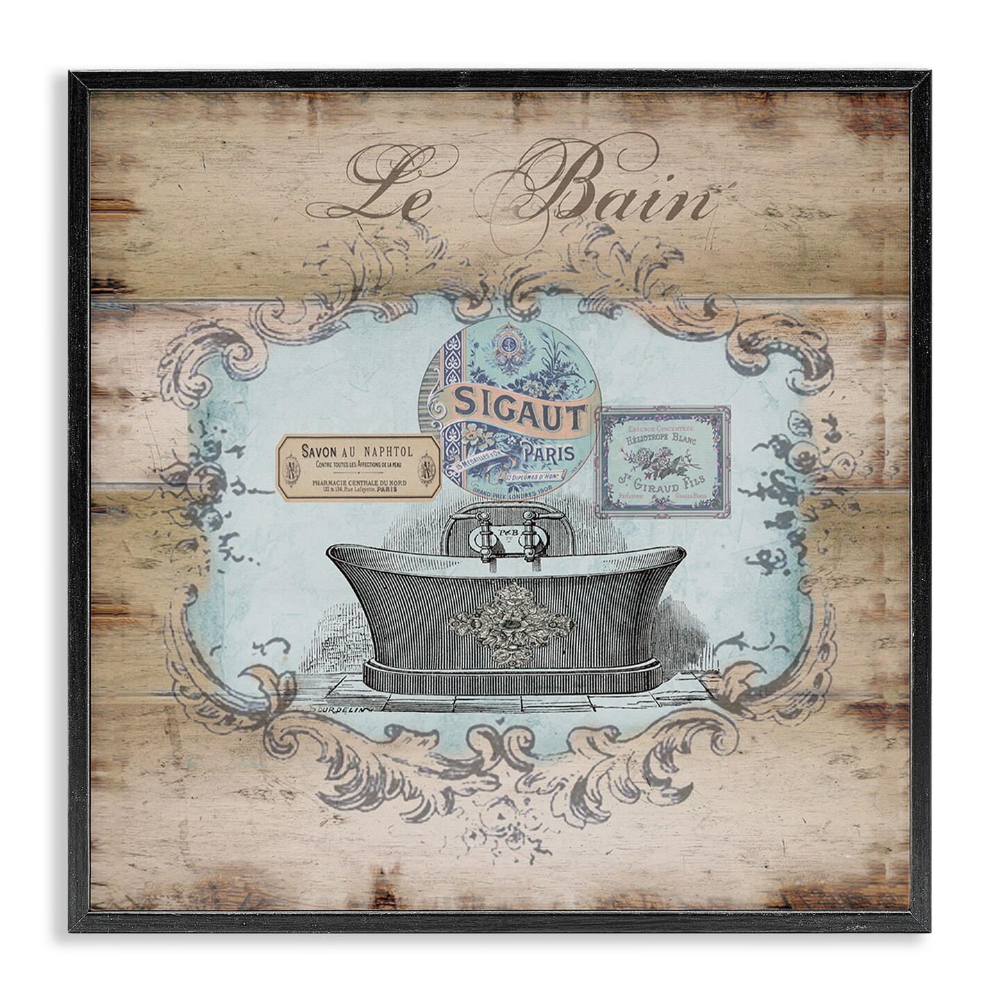 Stupell Industries Le Bain Vintage Style Bath Framed Giclee Art