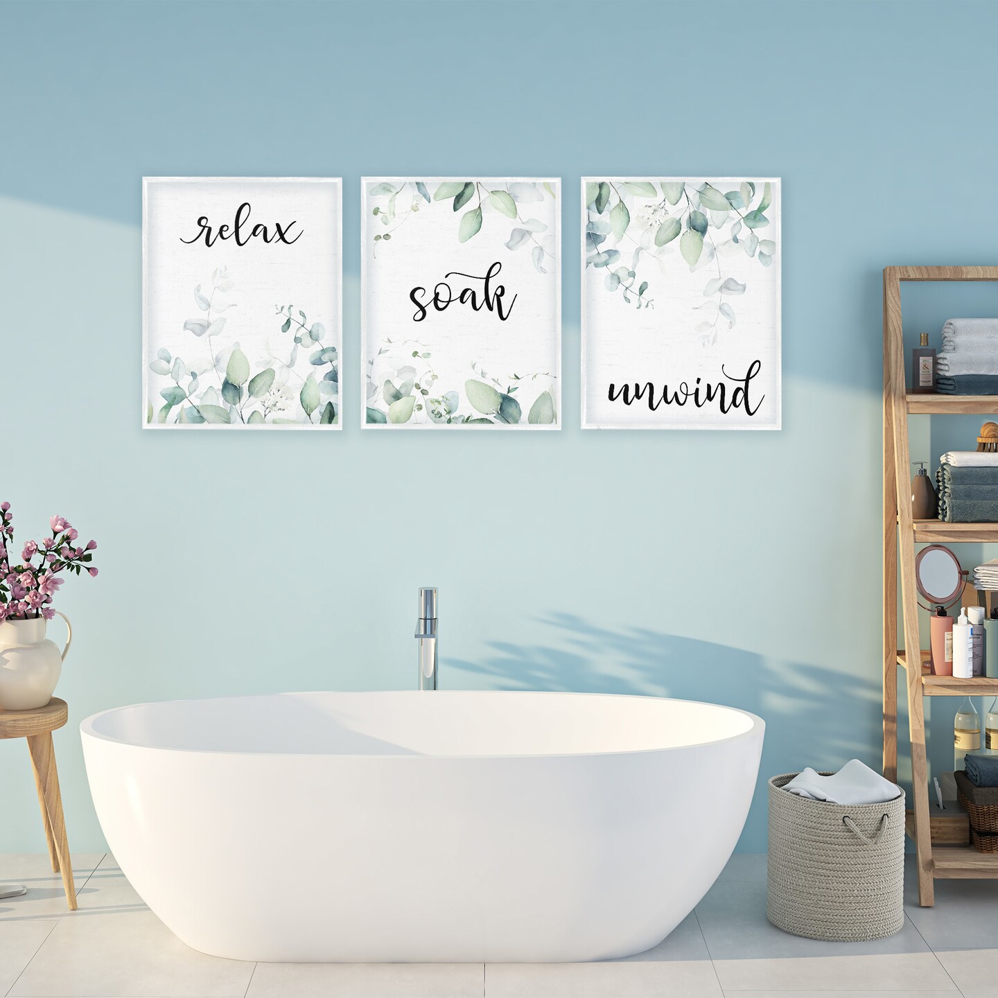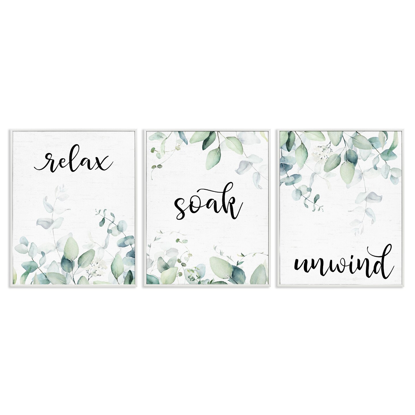 Stupell Industries Leafy Bathroom Herbs 3pc Framed Giclee Set, design by Lettered and Lined