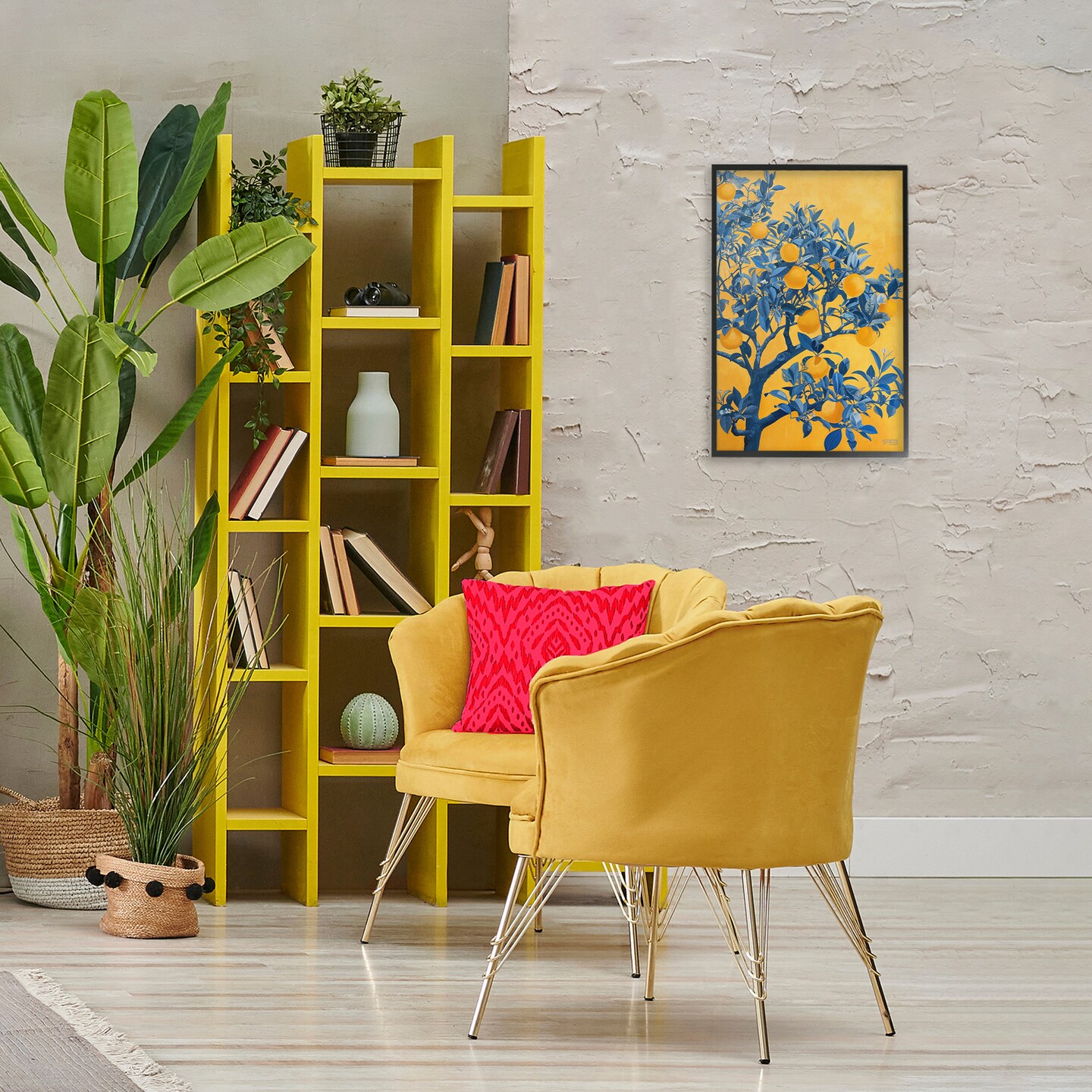Stupell Industries Lemon Tree on Orange Framed Giclee Wall Art Design by RB