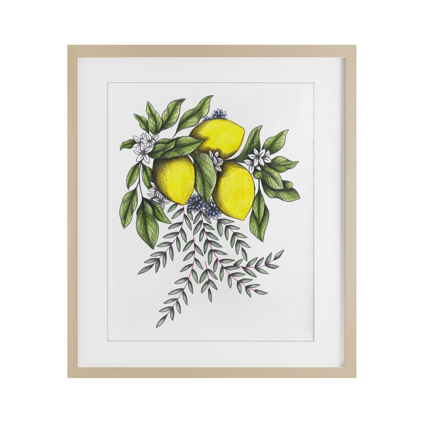 Stupell Industries Lemons & Flowers Vintage Sketch Framed Print Under Glass, design by Cecilia Battaini